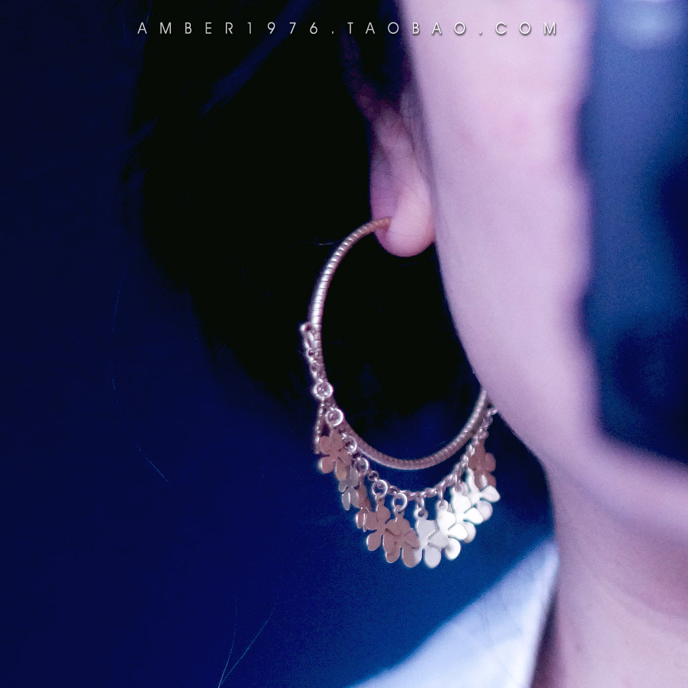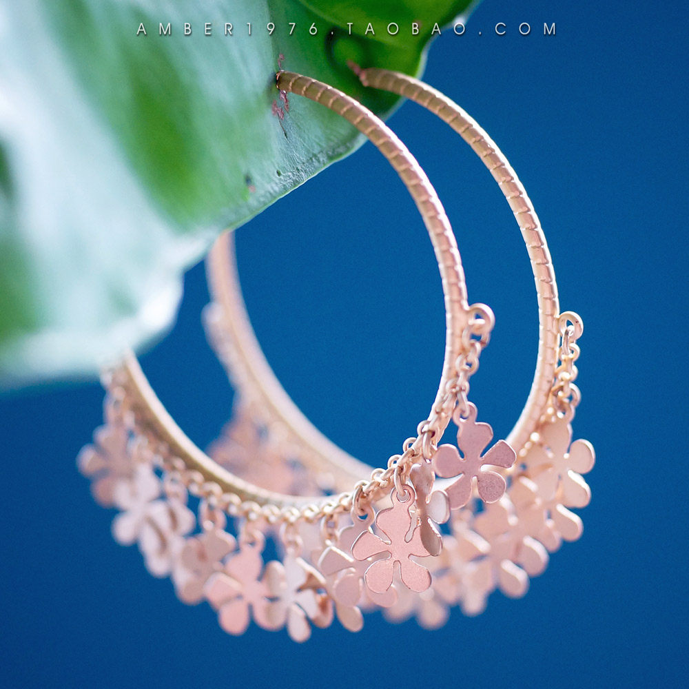 No.207 Fossil 大气又百搭古董感十足雾光金雕刻琳琅花片耳环耳圈