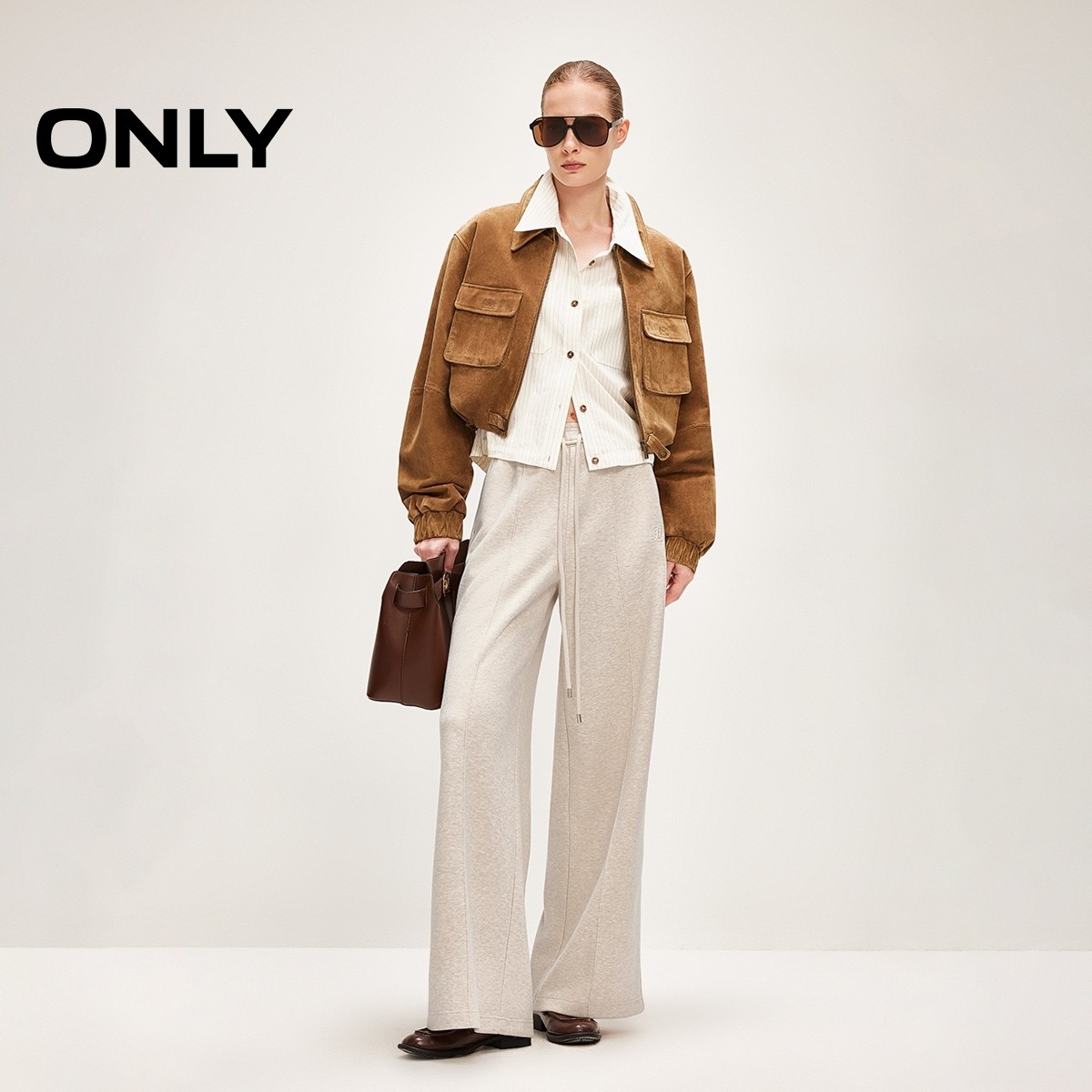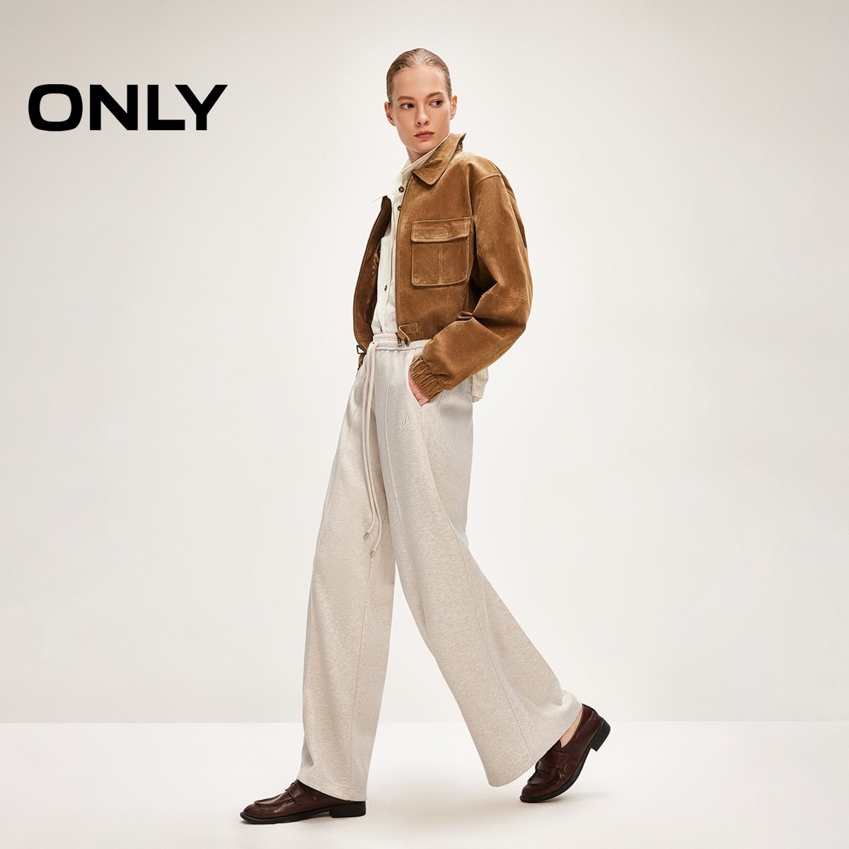 ONLY2026春季新款宽松高腰松紧抽绳纯色轻暖卫裤直筒裤休闲裤女