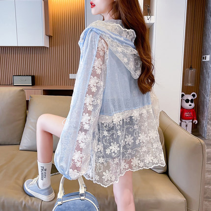 户外透气蕾丝薄款防晒衣女2025新款夏季宽松冰丝防晒服开衫外套潮