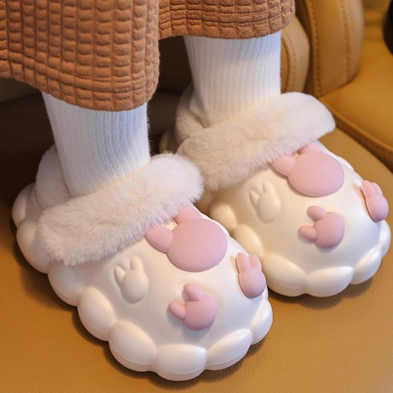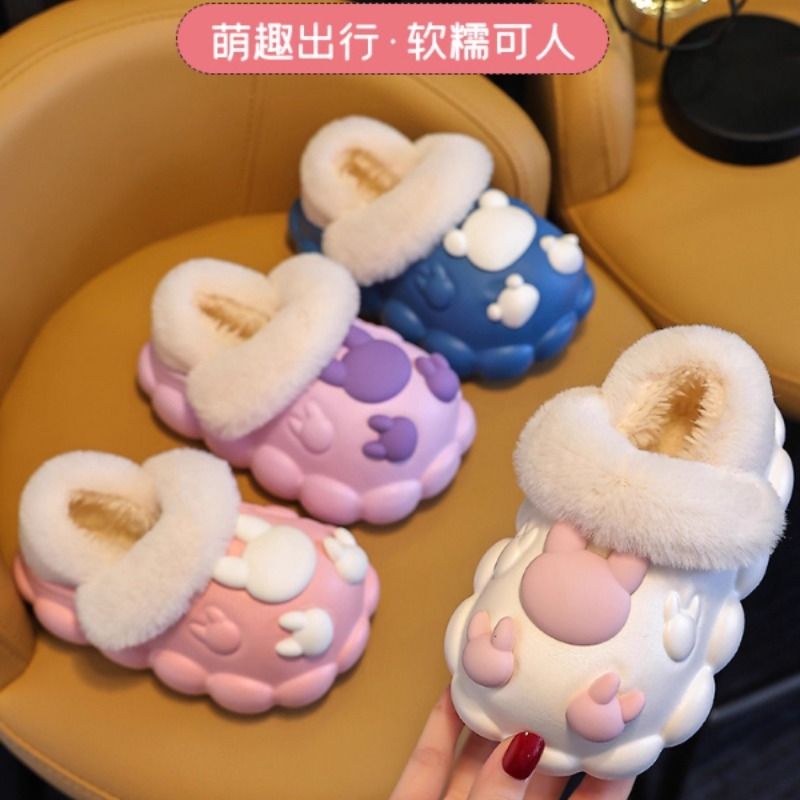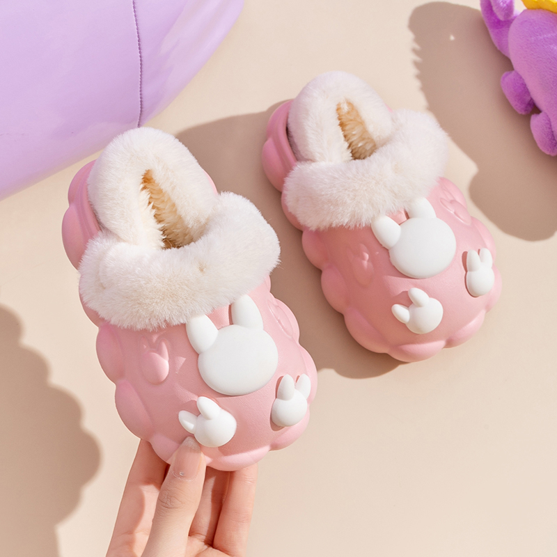 卡通兔子儿童拖鞋冬季宝宝棉拖鞋防水包跟可拆卸女童男童毛毛棉鞋