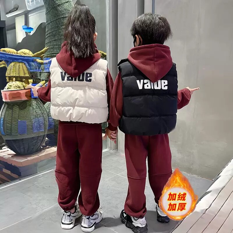 女童卫衣三件套2025冬季新款时髦洋气儿童秋冬装女孩加绒加厚套装