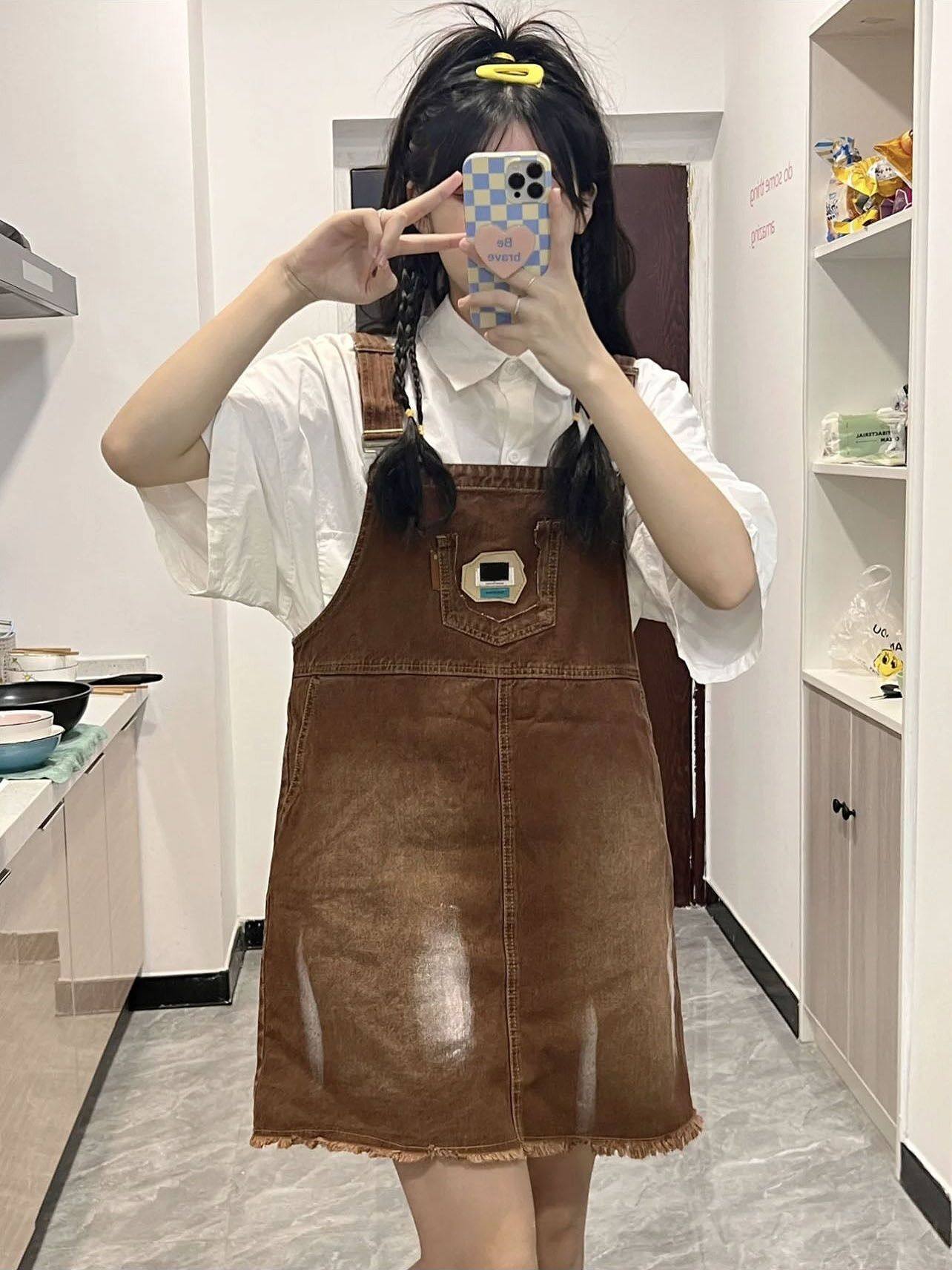 小个子夏装搭配冷淡系女装高级牛仔背带裙俏皮女装活泼两件套装夏