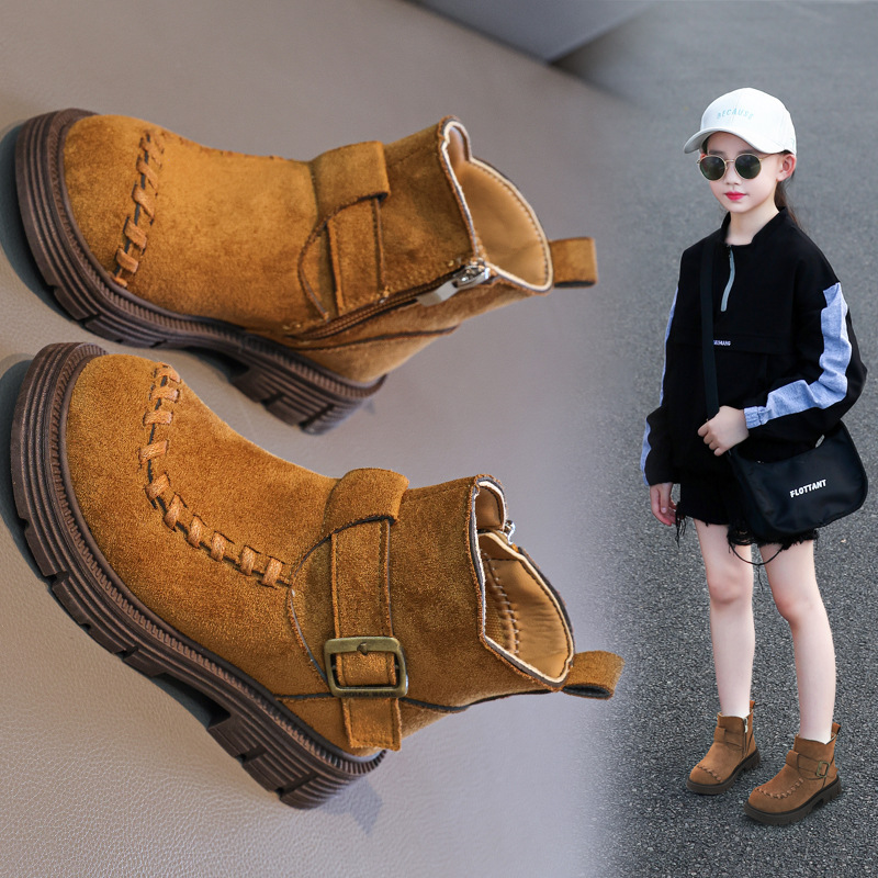 女童马丁靴厚底勃肯短靴2025秋季新款侧拉链单靴复古切尔西烟筒靴