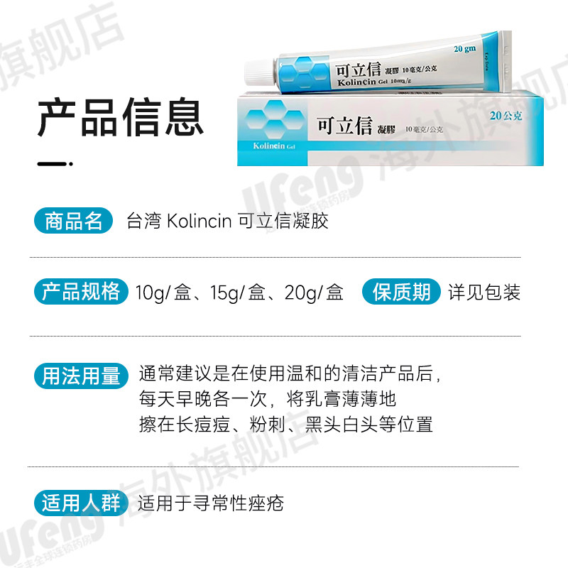 台湾可立信凝胶Kolincin Gel20g祛痘去痘印淡化进口消炎