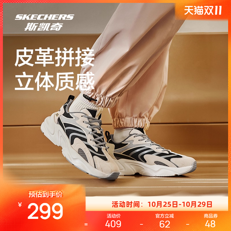 斯凯奇踏浪老爹鞋新品男女同款运动鞋轻质舒适熊猫鞋复古时尚潮流