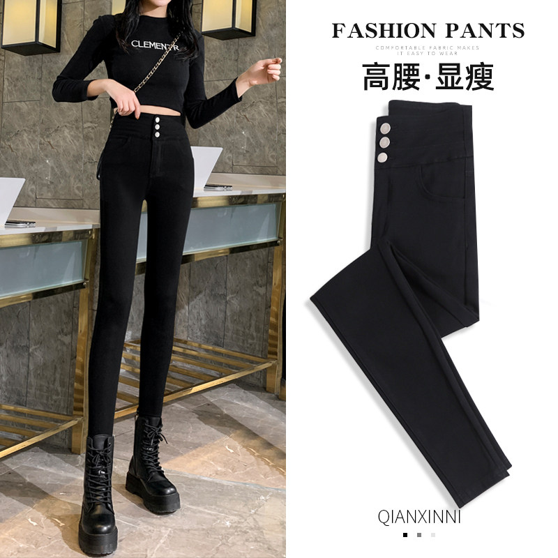 黑色打底裤女春秋款外穿2023新款高腰显瘦紧身铅笔魔术小脚小黑裤