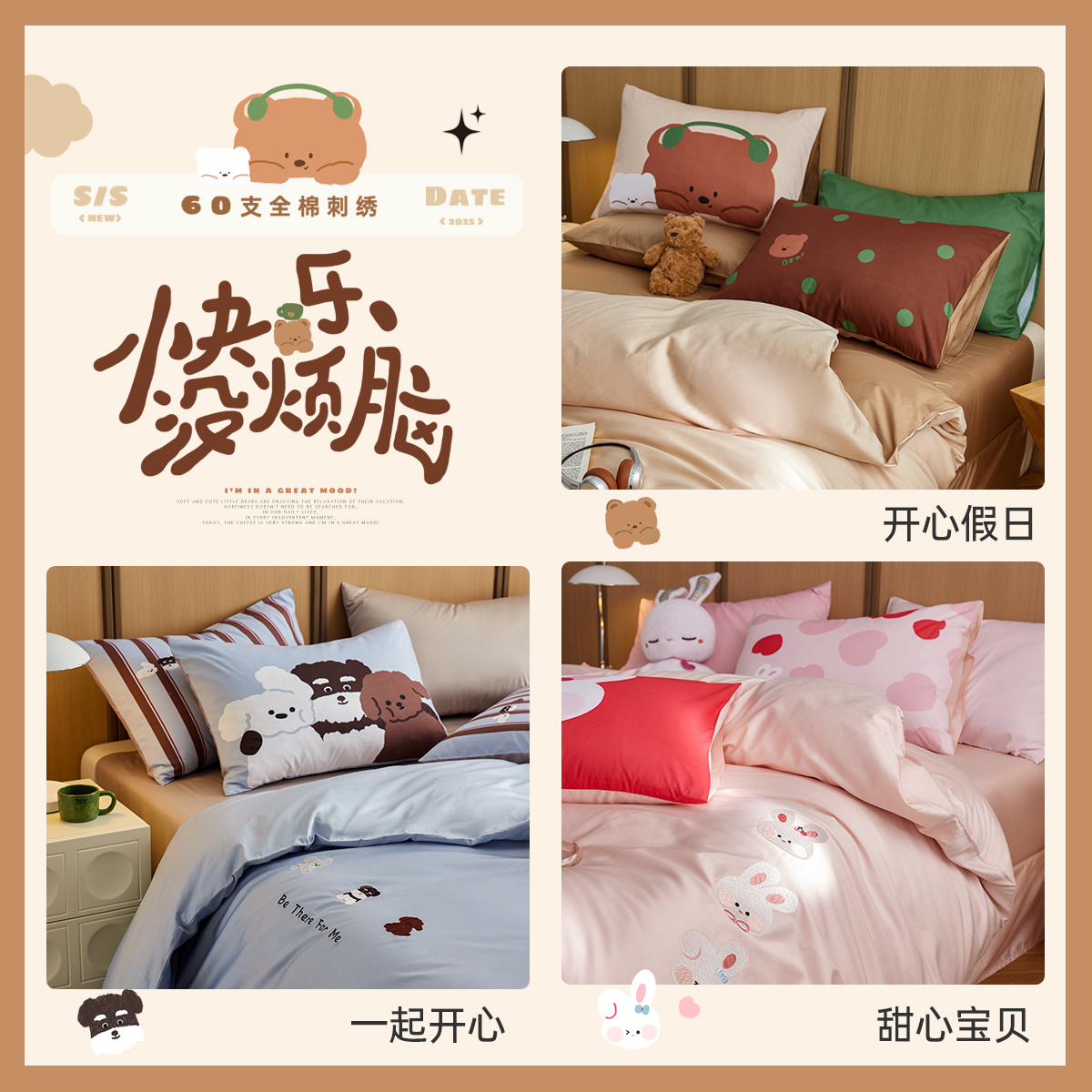 多喜爱快乐没烦恼系列60支全棉卡通三/四件套儿童刺绣床品套件