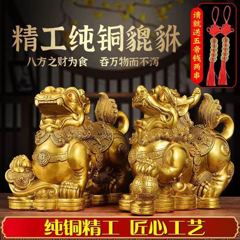 纯铜貔貅大号招财摆件镇店貔貅公母一对皮丘车载店铺开业礼品摆件