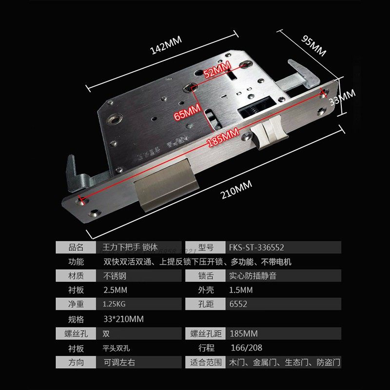 替换王力防盗门自动弹锁33*210双快双通双活电子智能锁指纹锁锁体