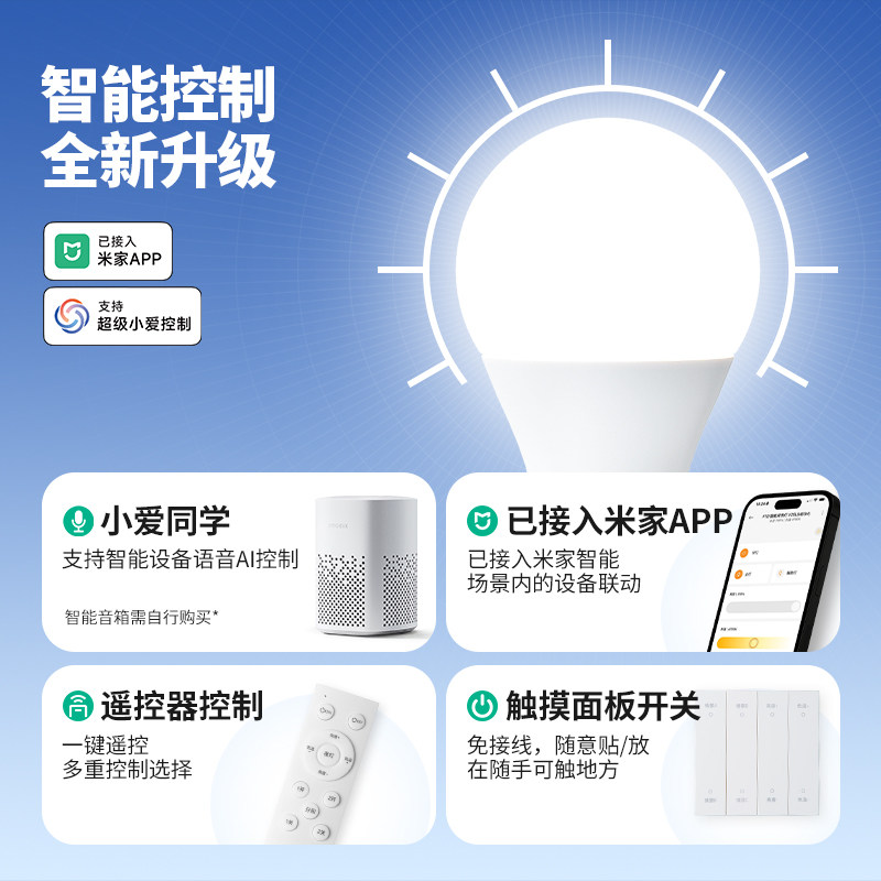 智能led灯泡e27螺口小爱同学全光谱家用护眼球泡已接入米家APP