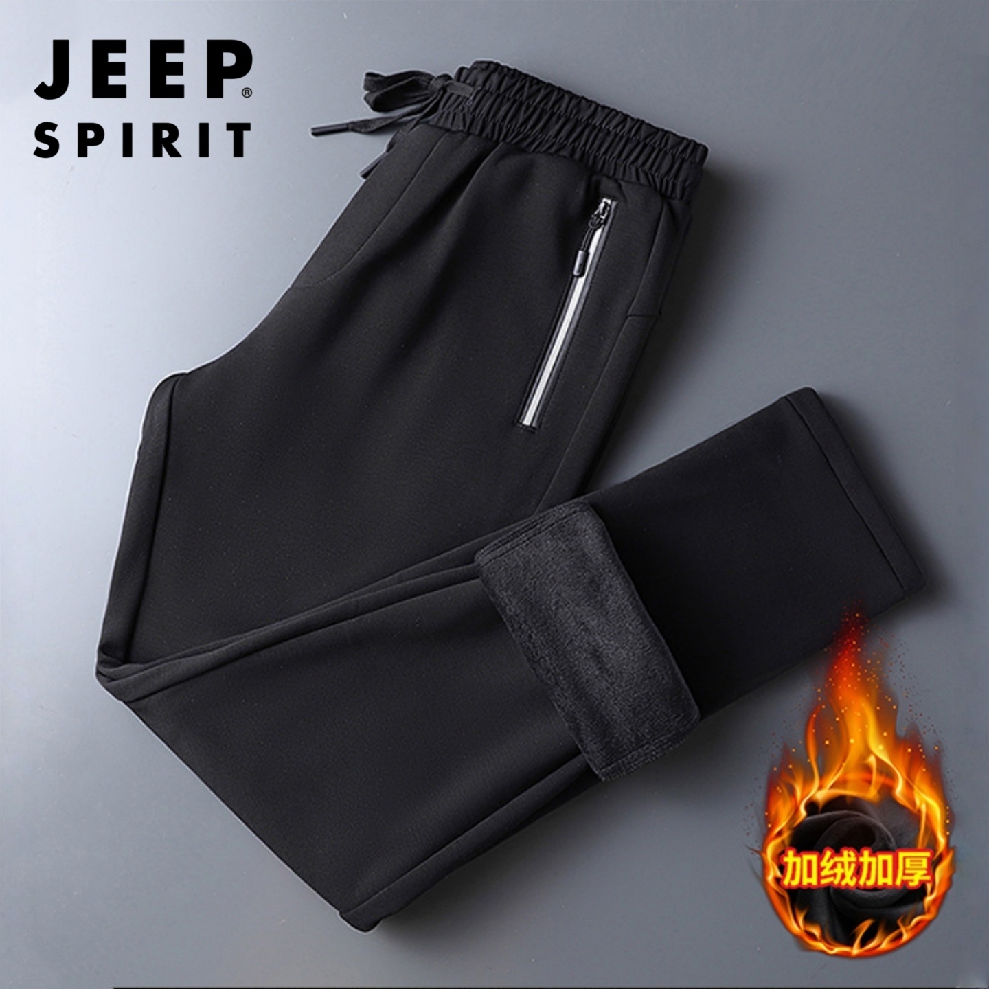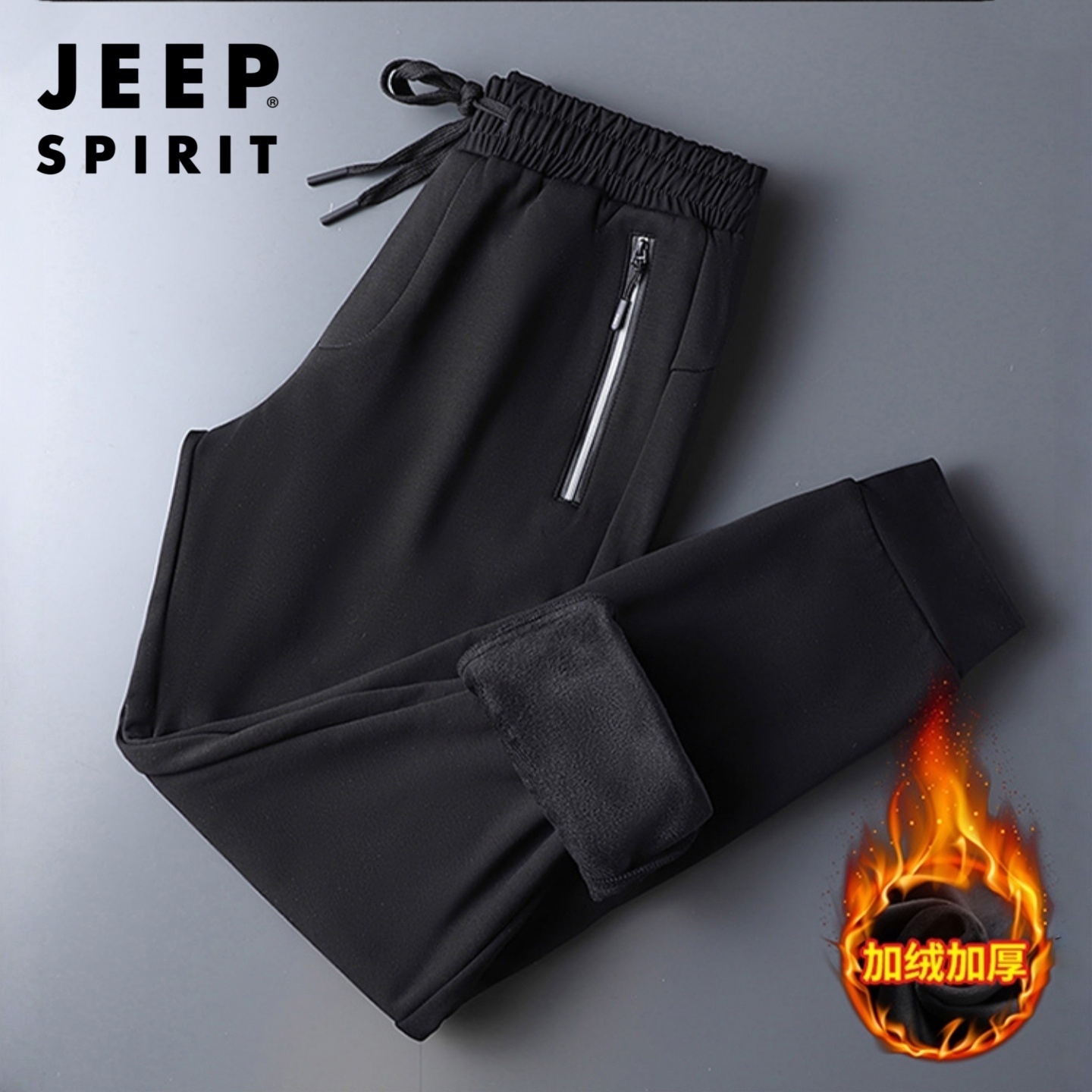 吉普加绒运动裤男冬季爸爸男装卫裤加厚长裤子宽松直筒休闲裤男款