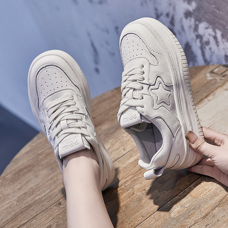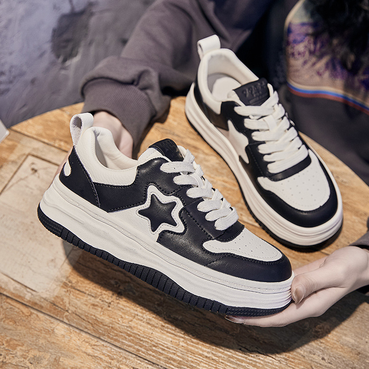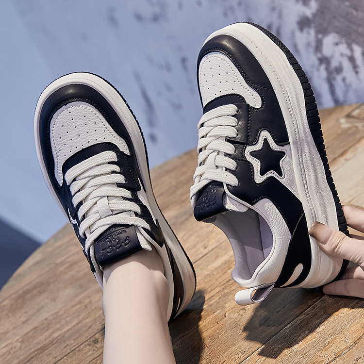 星星真皮小白鞋2025秋冬百搭韩版拼色休闲板鞋厚底溶解运动鞋女