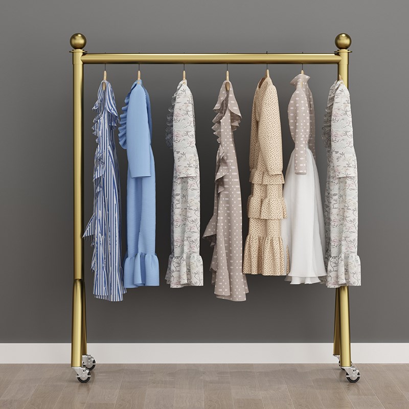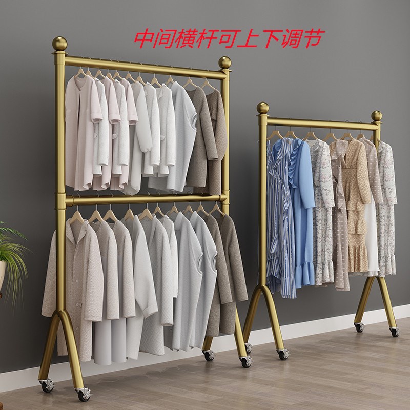 服装店双层展示架可升降女装金色挂衣架落地侧挂货架摆摊带移动轮