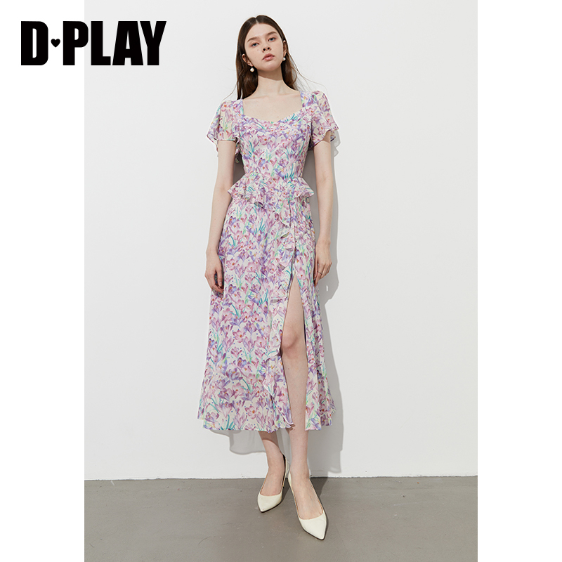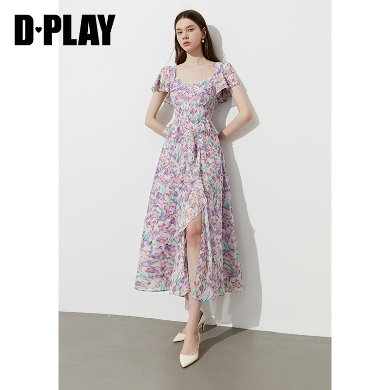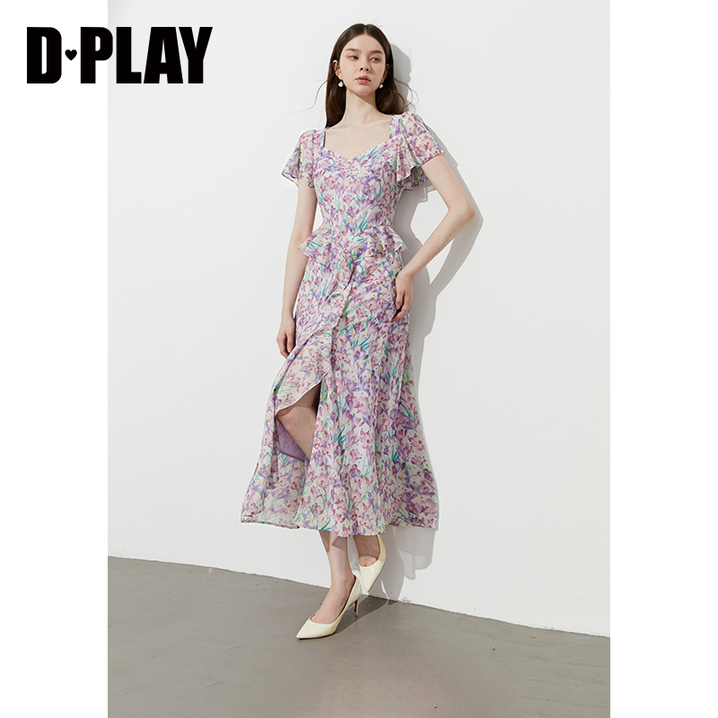 DPLAY【度假系列】2025夏季新款紫色连衣裙女好看法式收腰裙子