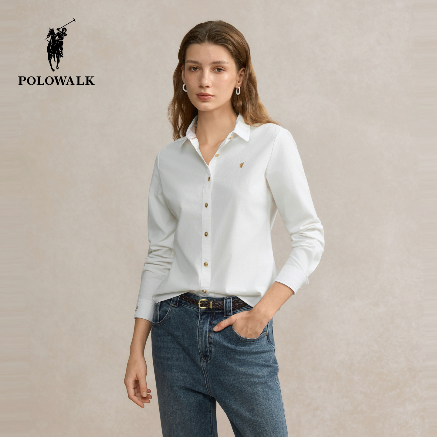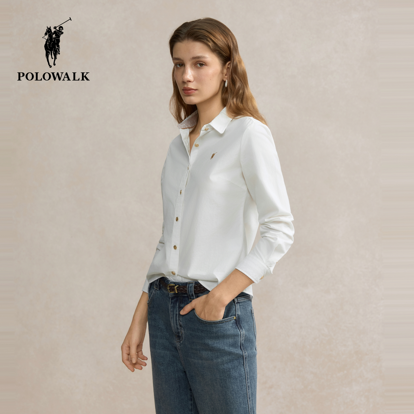 【100%纯棉】POLOWALK女士长袖衬衫2025秋季新款翻领商务上衣女装