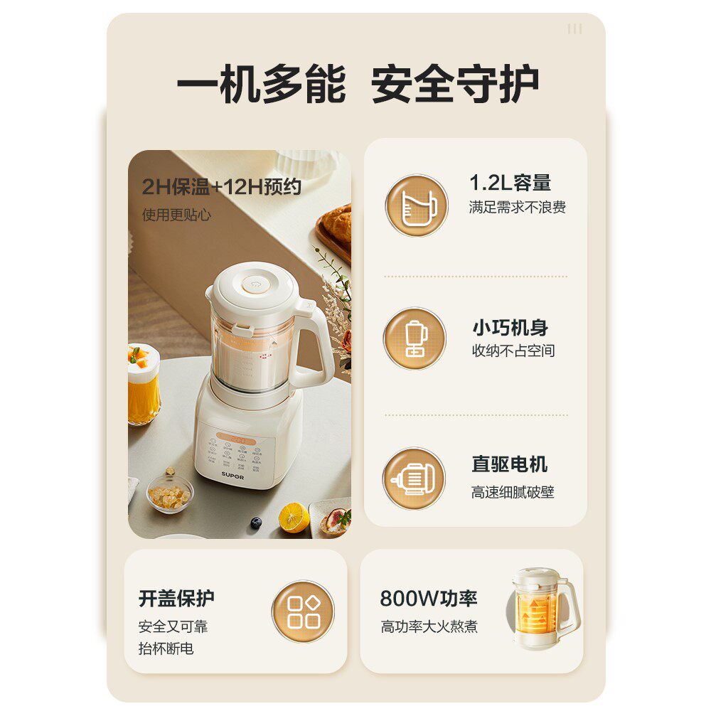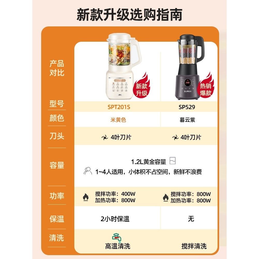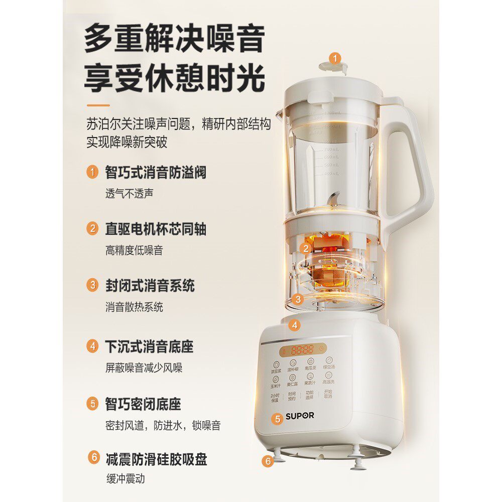 苏泊尔破壁机豆浆家用全自动静低音新款多功能小型料理机正品旗舰