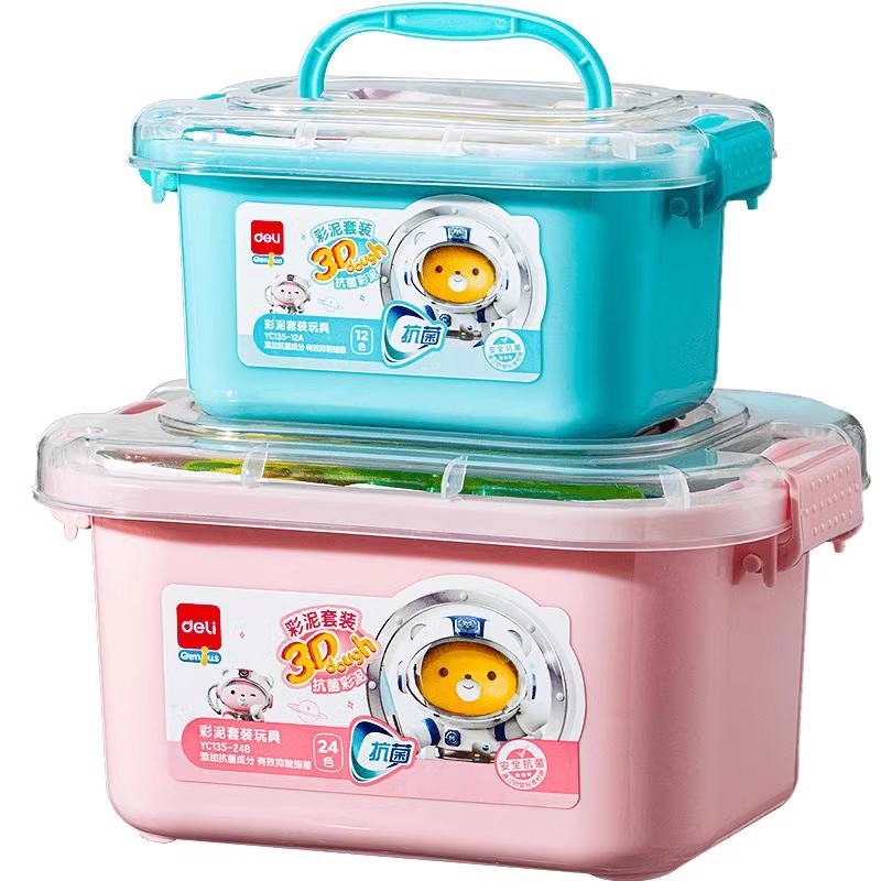 得力抗菌橡皮泥无毒彩泥儿童12色24色超轻粘土食品级无味小学生幼儿园专用模具手工制作diy材料工具套装黏土