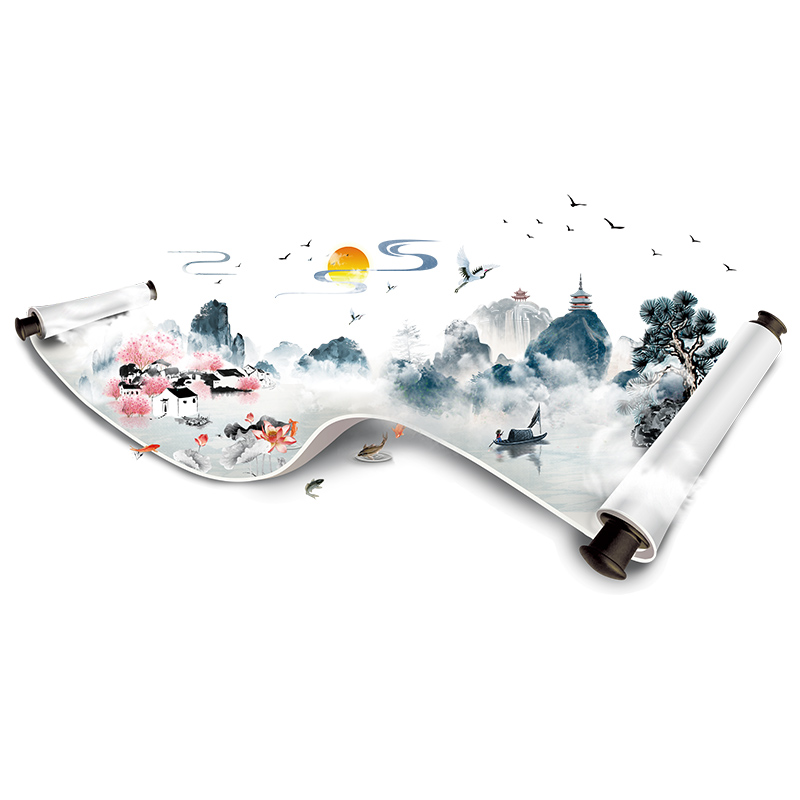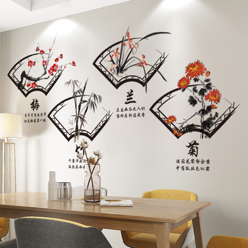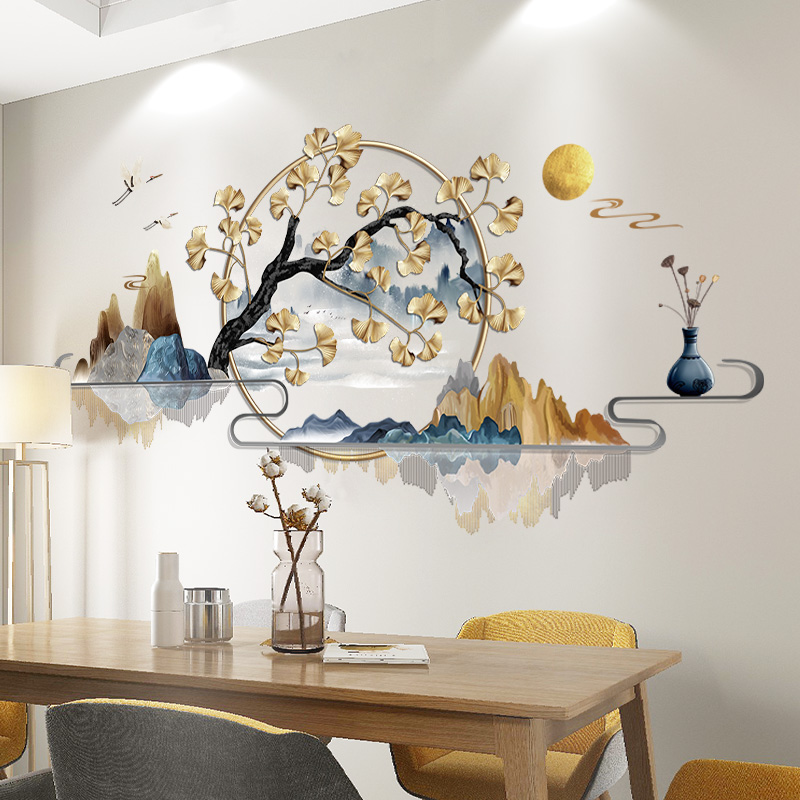 中国风山水画贴纸墙贴自粘装饰贴画壁纸墙画客厅沙发背景墙壁遮丑
