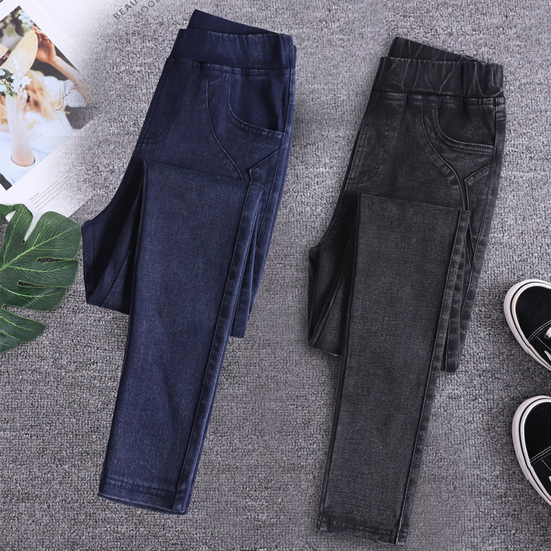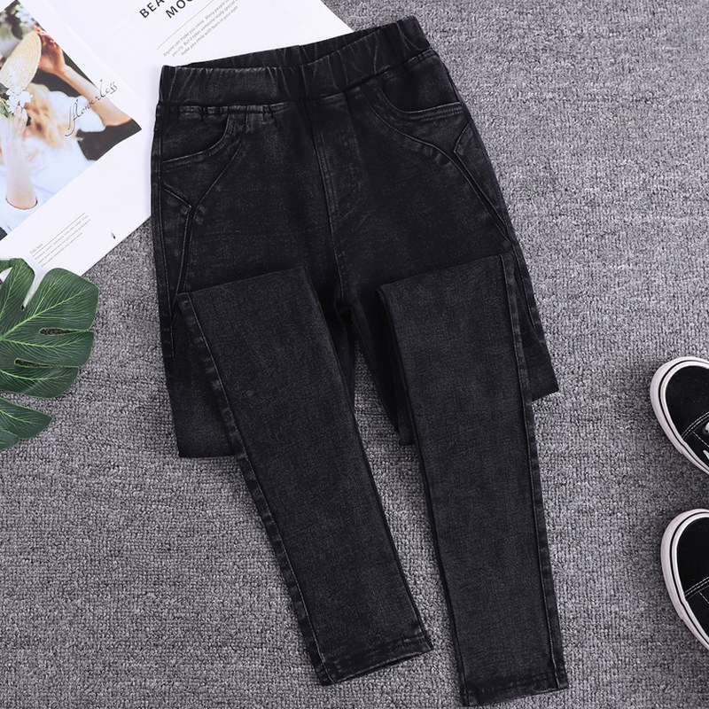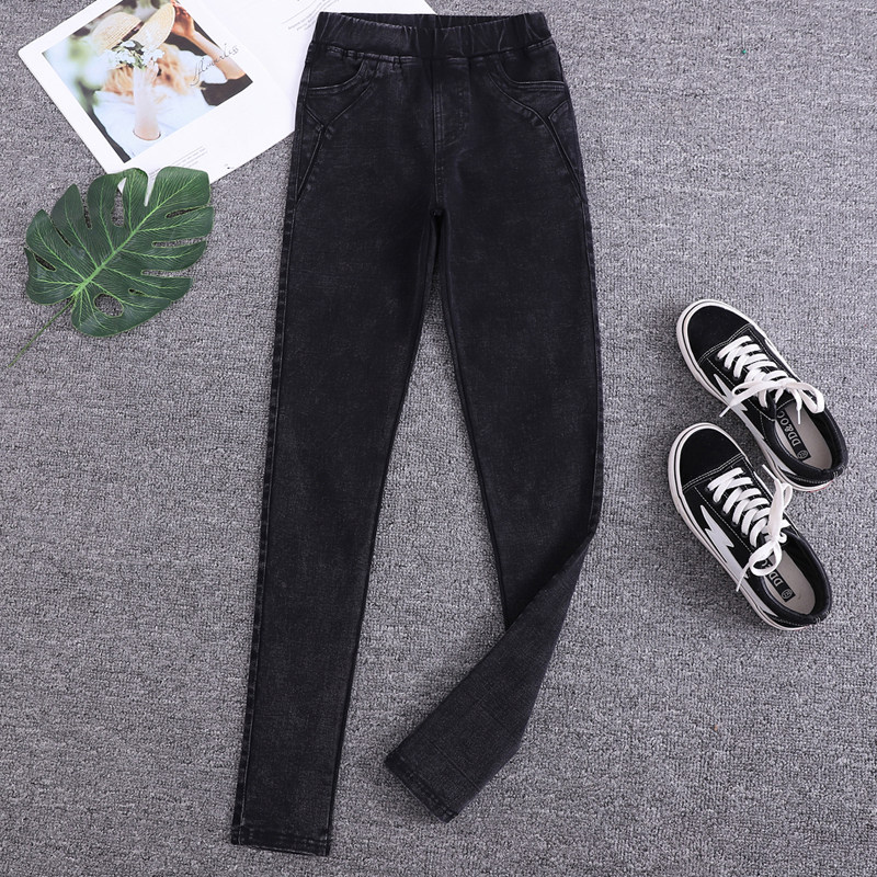 加肥加大码打底裤女外穿2024春款黑色高腰显瘦弹力仿牛仔小脚长裤
