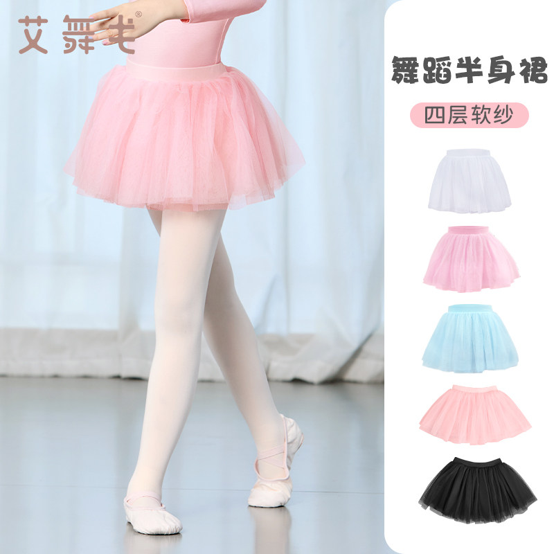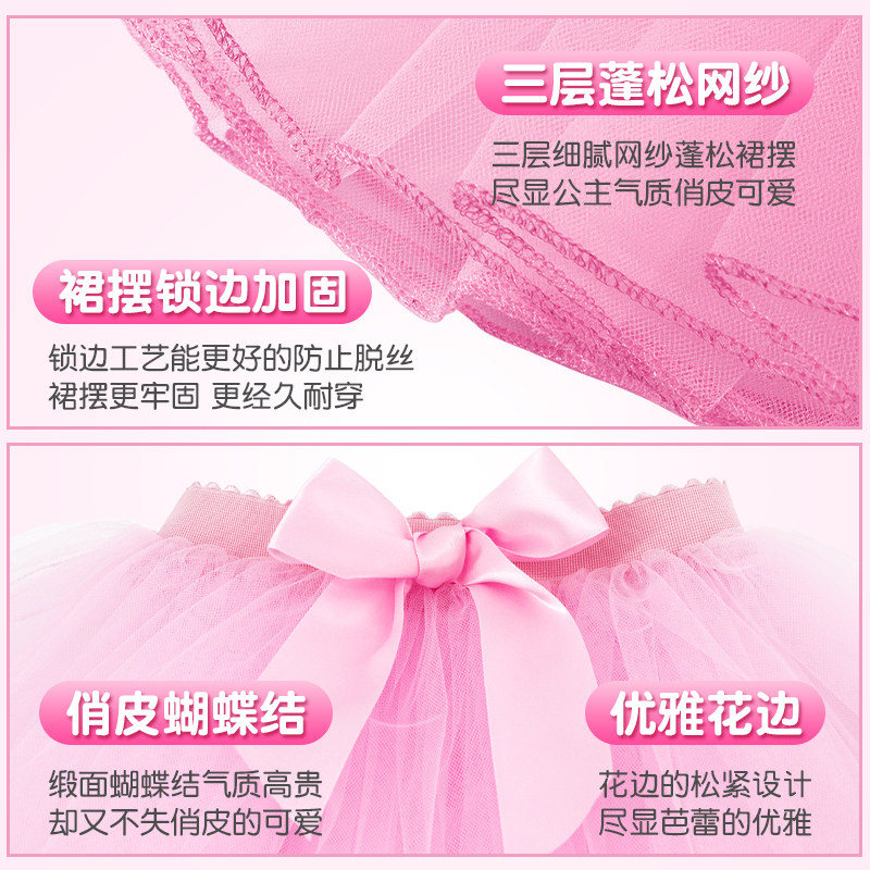 儿童舞蹈服半身裙蓬蓬裙短裙芭蕾舞裙女童跳舞裙子粉色练功服纱裙