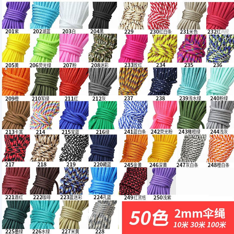 2mm伞绳手链编织线 DIY手环细圆绳子配件编织材料 30米 100米