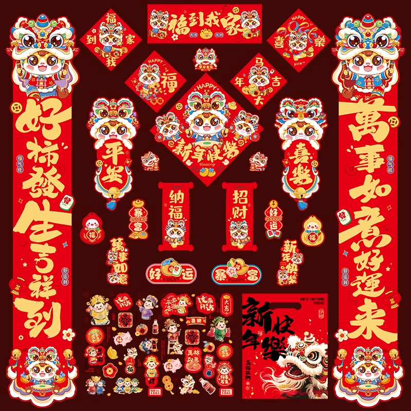 2026新年卡通对联套装春节装饰贴纸可爱福字春联家用春联入户门贴