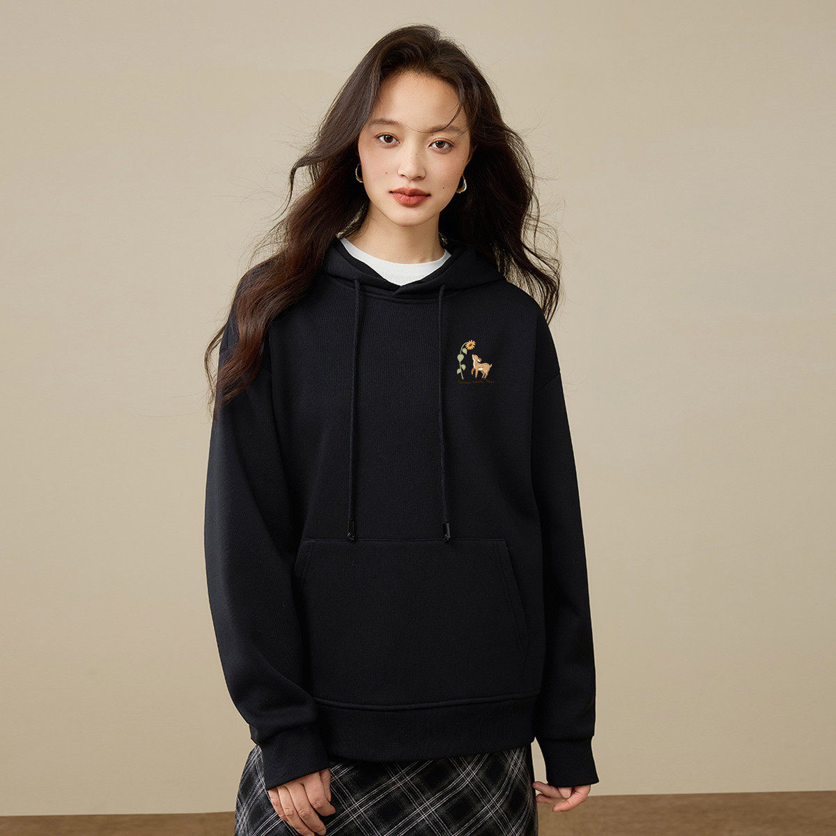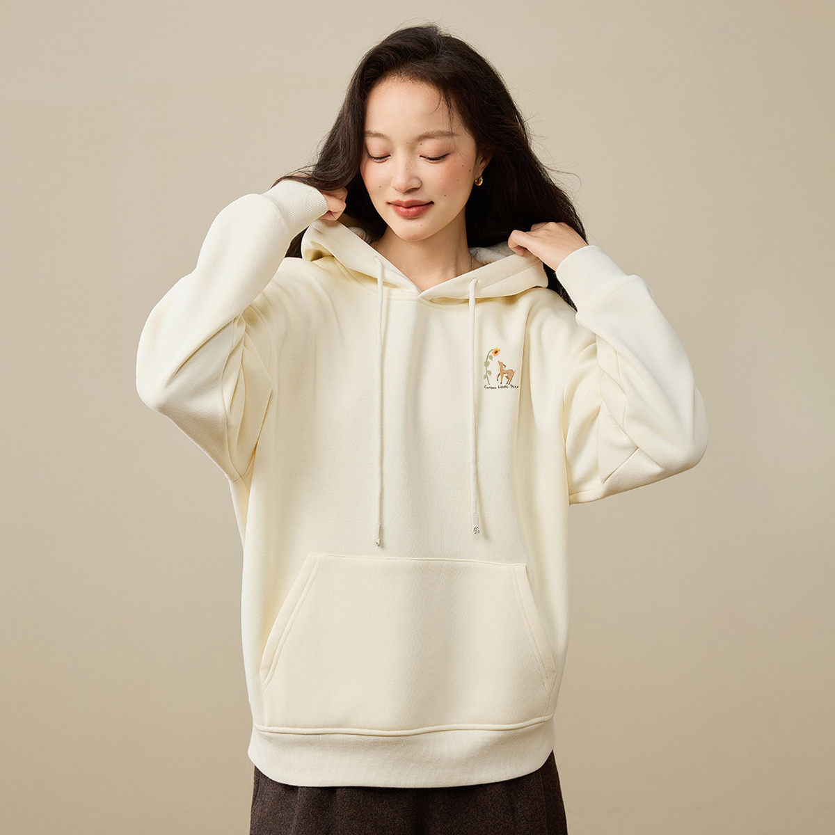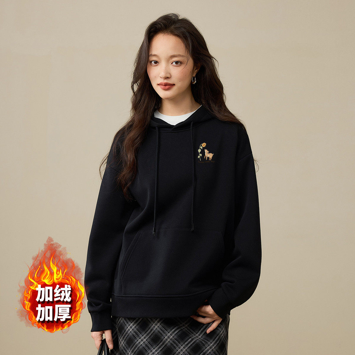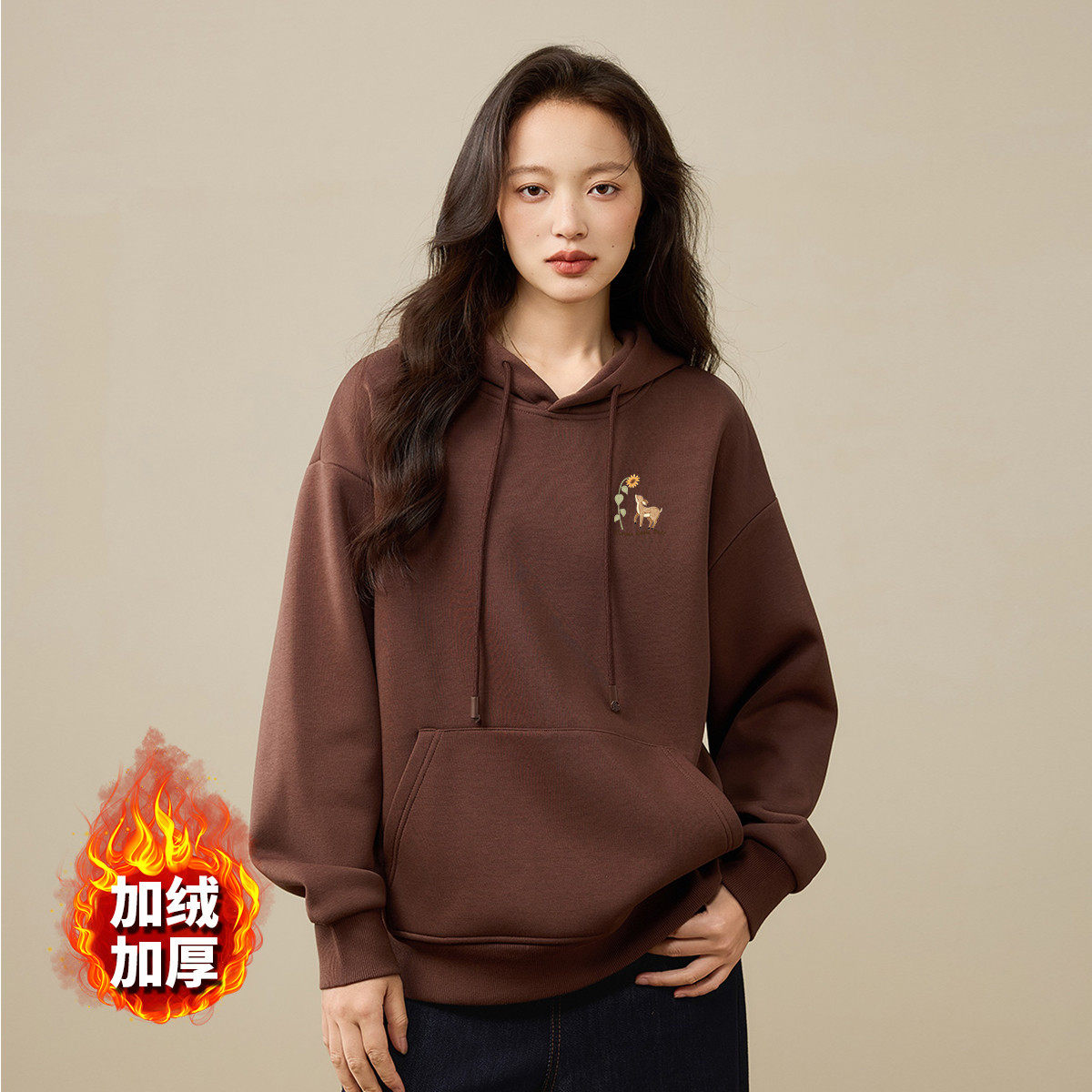 茵曼2025冬季新款加绒保暖长袖卫衣外套女连帽宽松显瘦百搭休闲