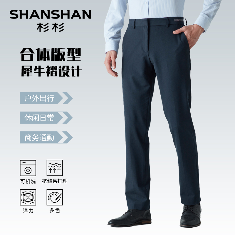 杉杉商务免烫休闲裤男士2025春季新款中腰直筒长裤子犀牛褶男西裤