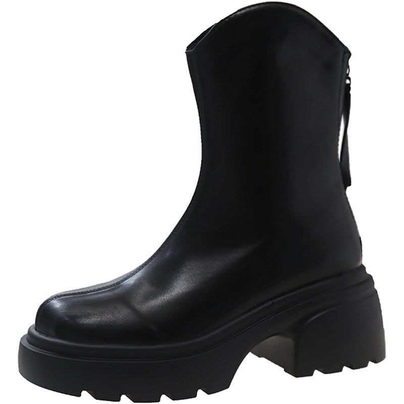 时尚百搭马丁靴女2025年春秋季新款显瘦粗跟单靴网红超火骑士短靴