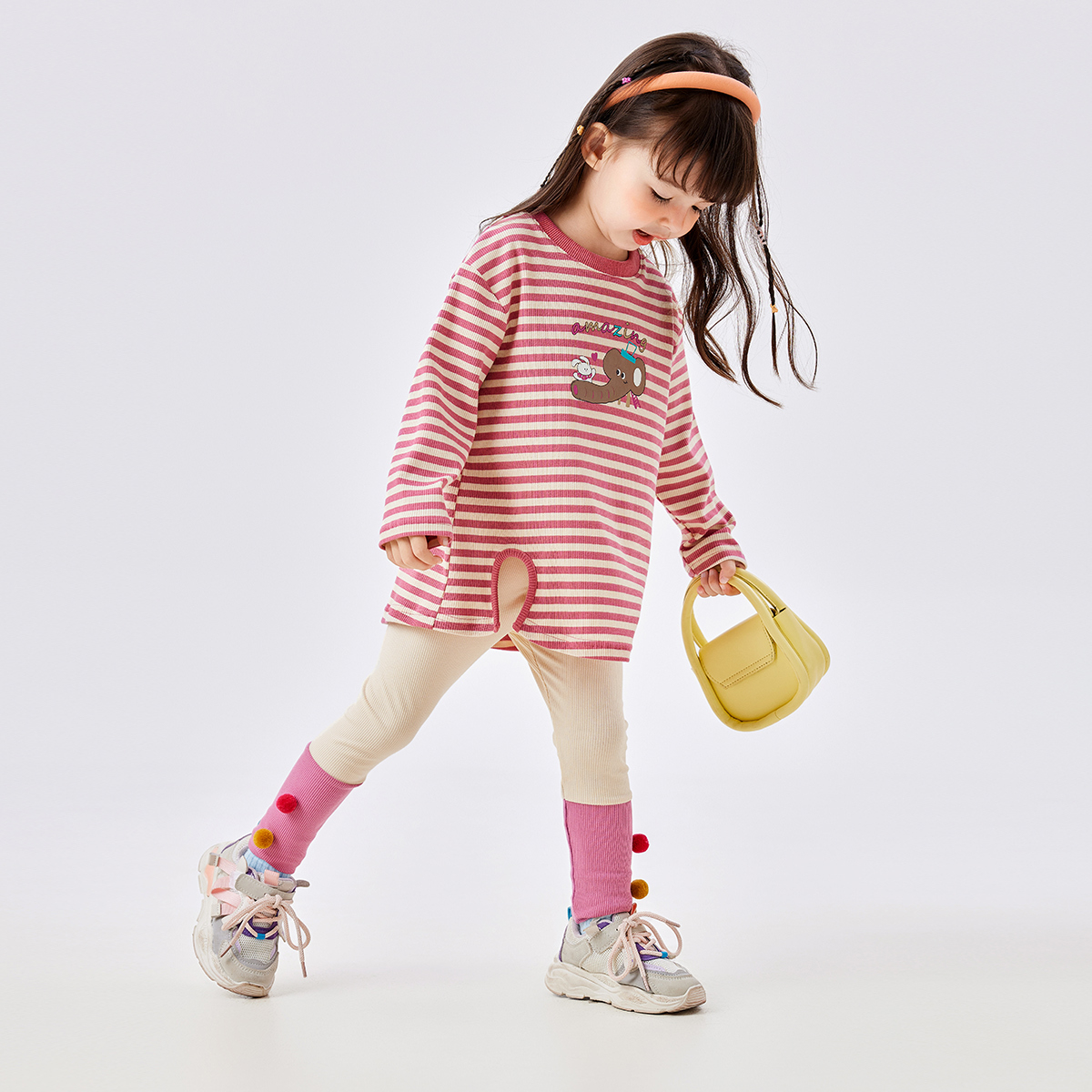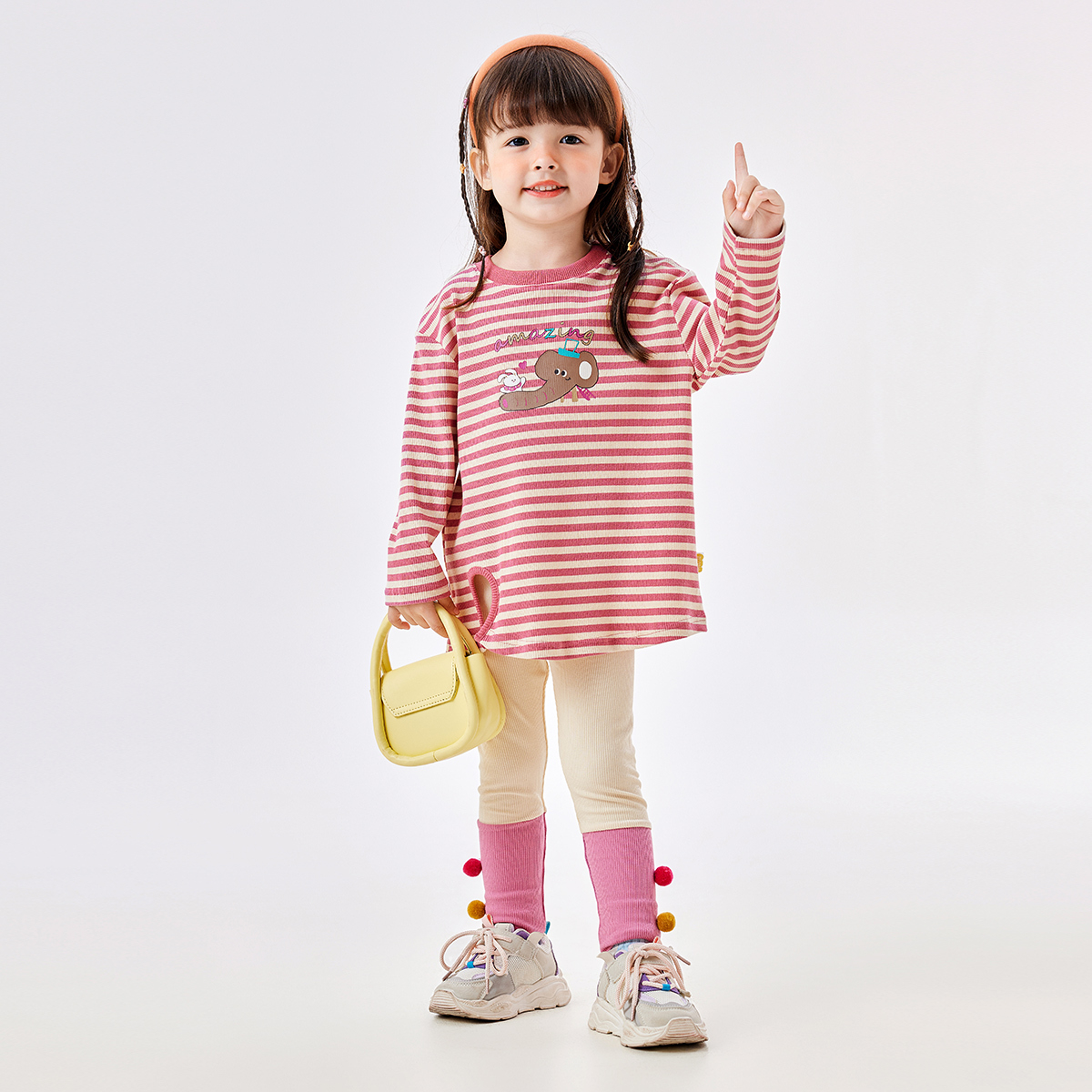 女童套装春秋印花宝宝条纹长袖t恤打底裤两件套春装女宝春季童装