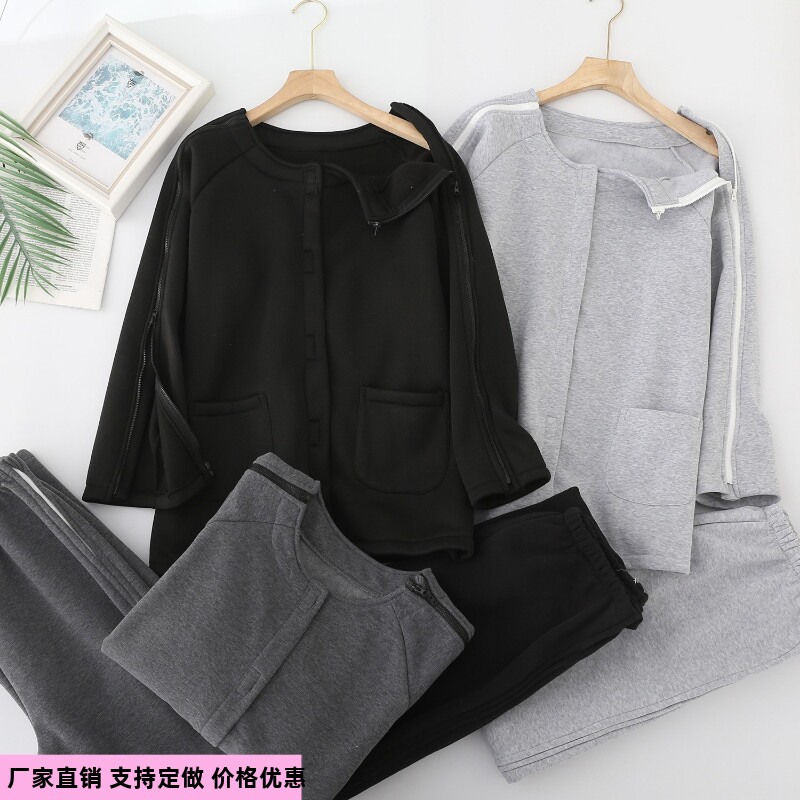 加绒棉方便护理男女全开上衣裤子