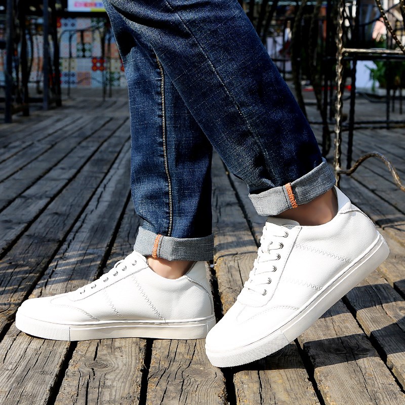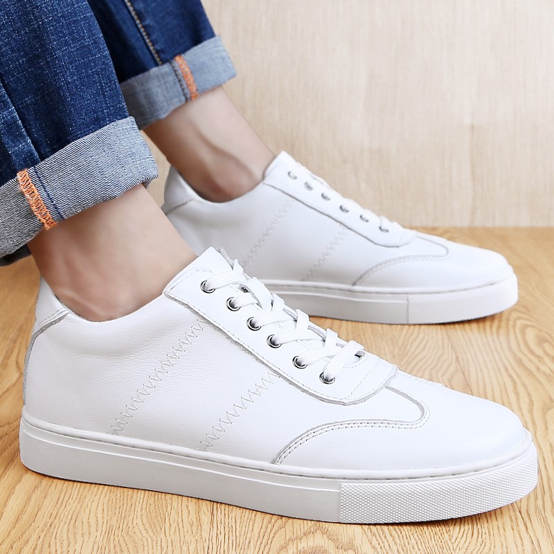 秋季增高鞋男真皮板鞋男韩版内增高男鞋8cm小码35 36X 37休闲皮鞋
