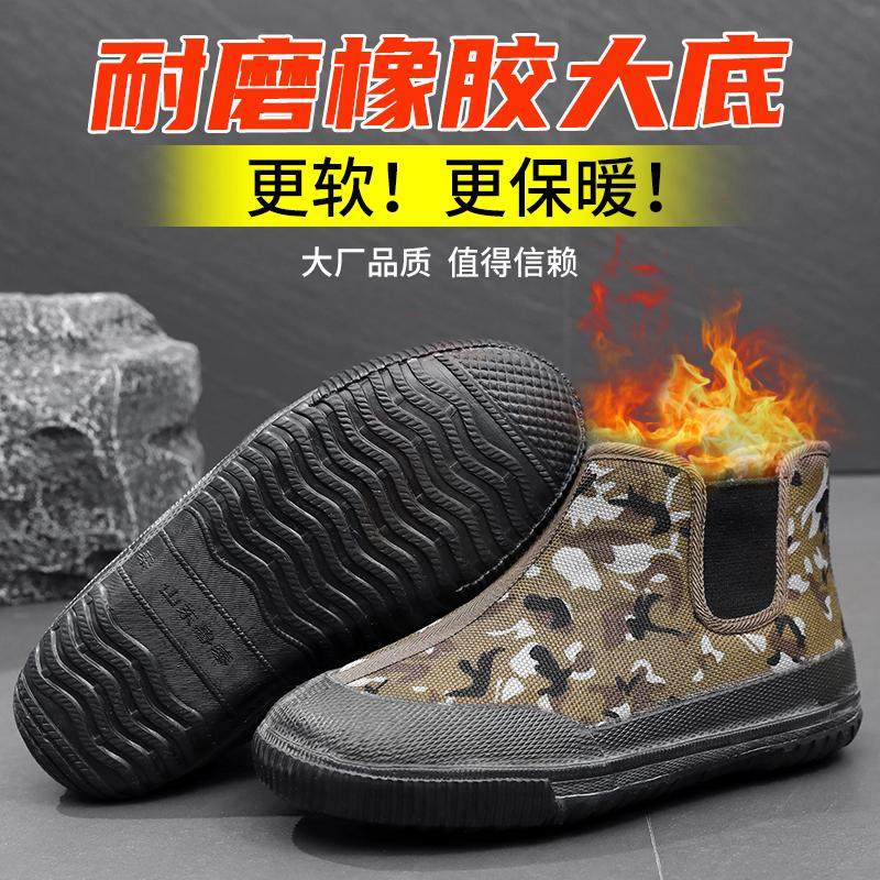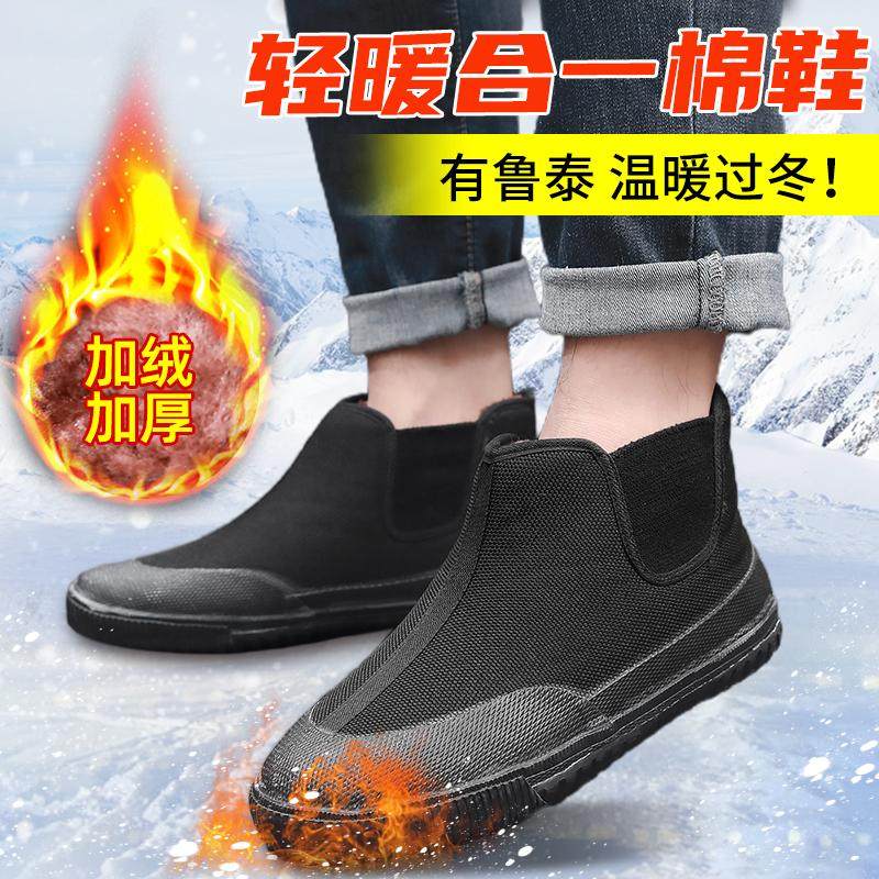鲁泰户外高帮加绒加厚保暖棉鞋一脚蹬耐磨解放鞋防滑棉鞋舒适耐磨
