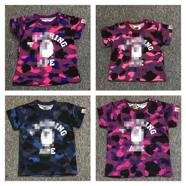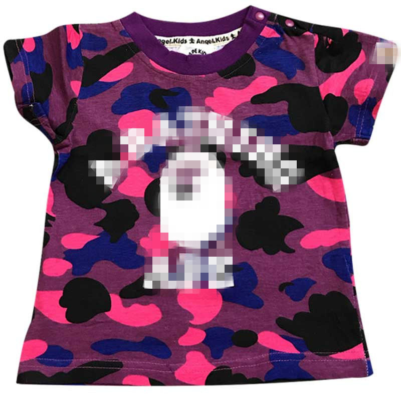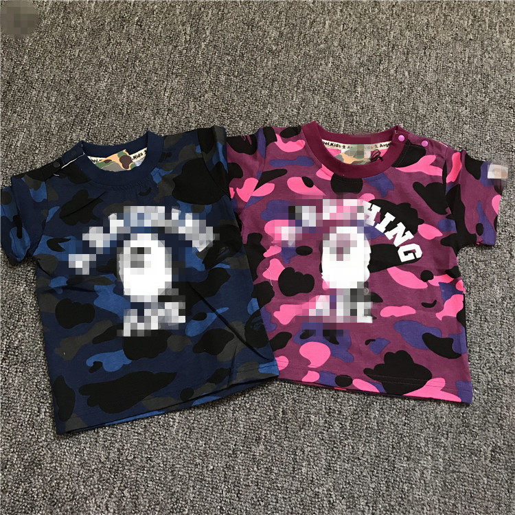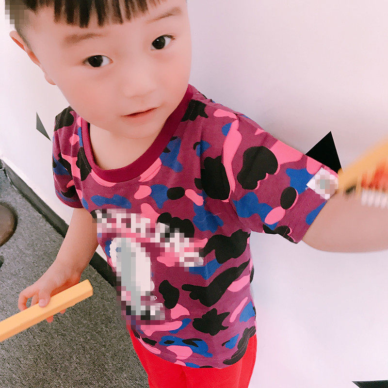 宝宝迷彩T恤夏季儿童Q9女短袖男童字母纯棉上衣1-2猴子衣服打底衣