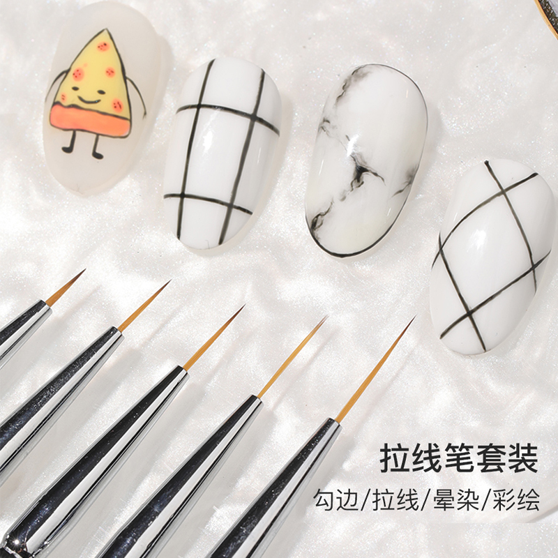日式拉线笔超细专业美甲笔刷套装5支画花彩绘拉丝调色光疗笔工具