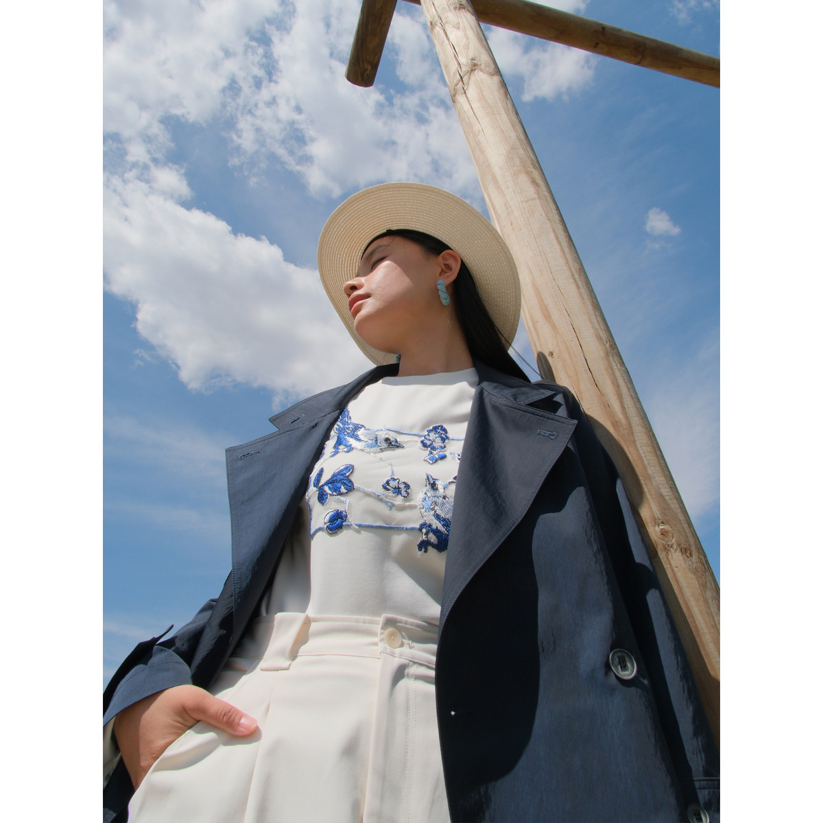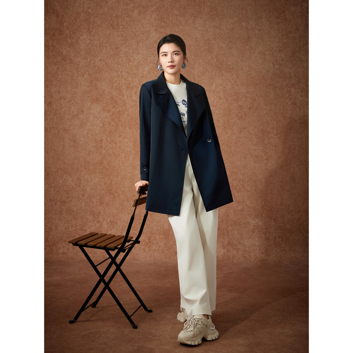 粉蓝衣橱2026年春装新款精简松弛感休闲廓形风衣女系带一手长外套