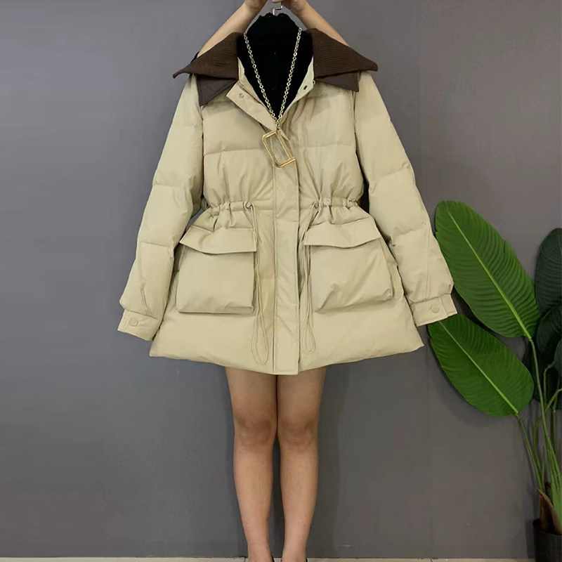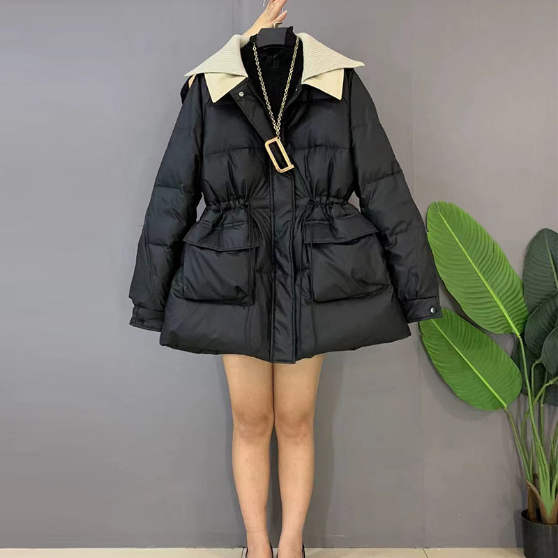 针织披肩领收腰系带棉服外套