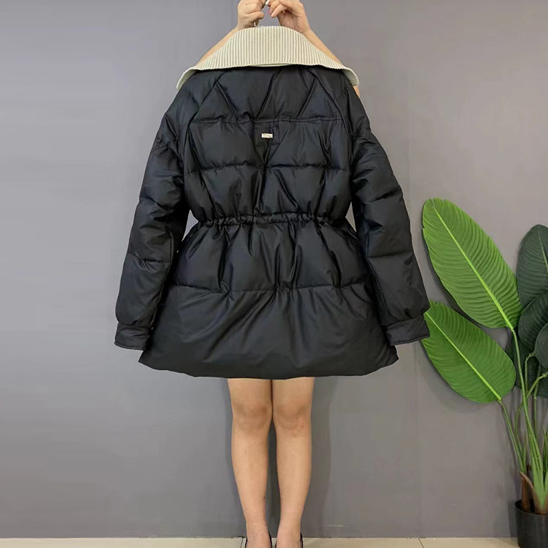 胖MM加肥针织披肩领收腰系带棉服大码女装韩版冬季款百搭减龄外套