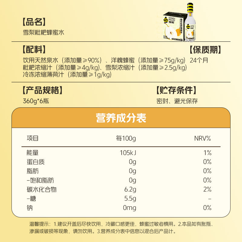 蜂解雪梨枇杷蜂蜜水360g*6瓶