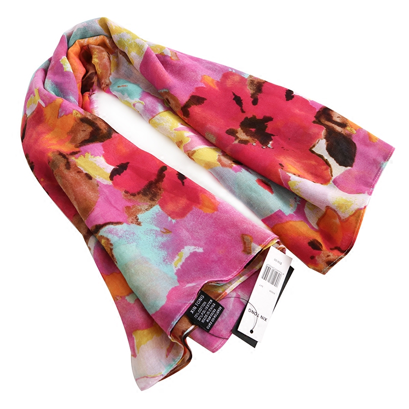 防晒丝巾春夏秋旅游披肩彩虹原单复古棉麻遮阳摆拍围巾女百搭送礼