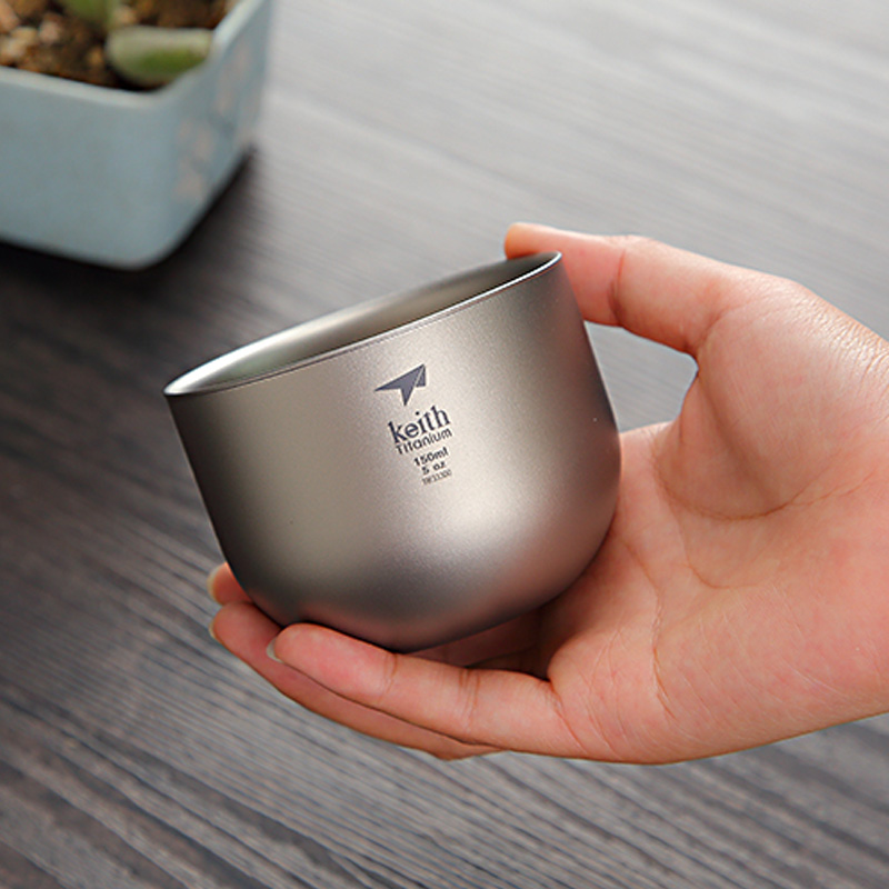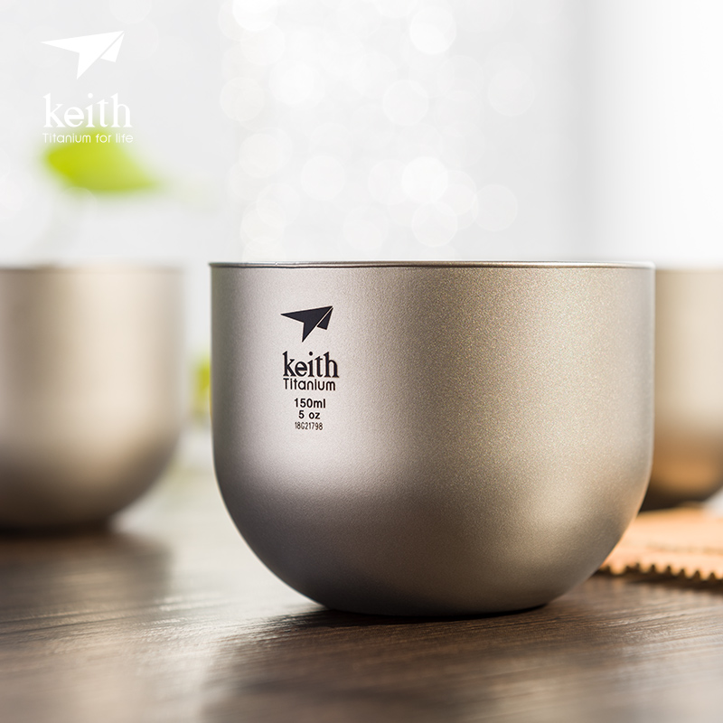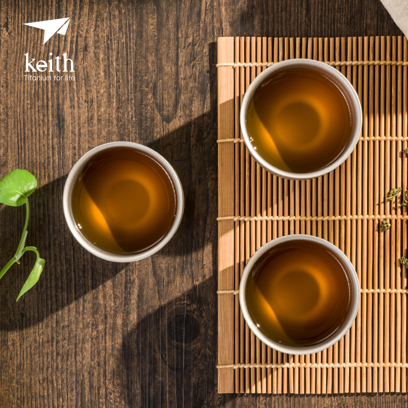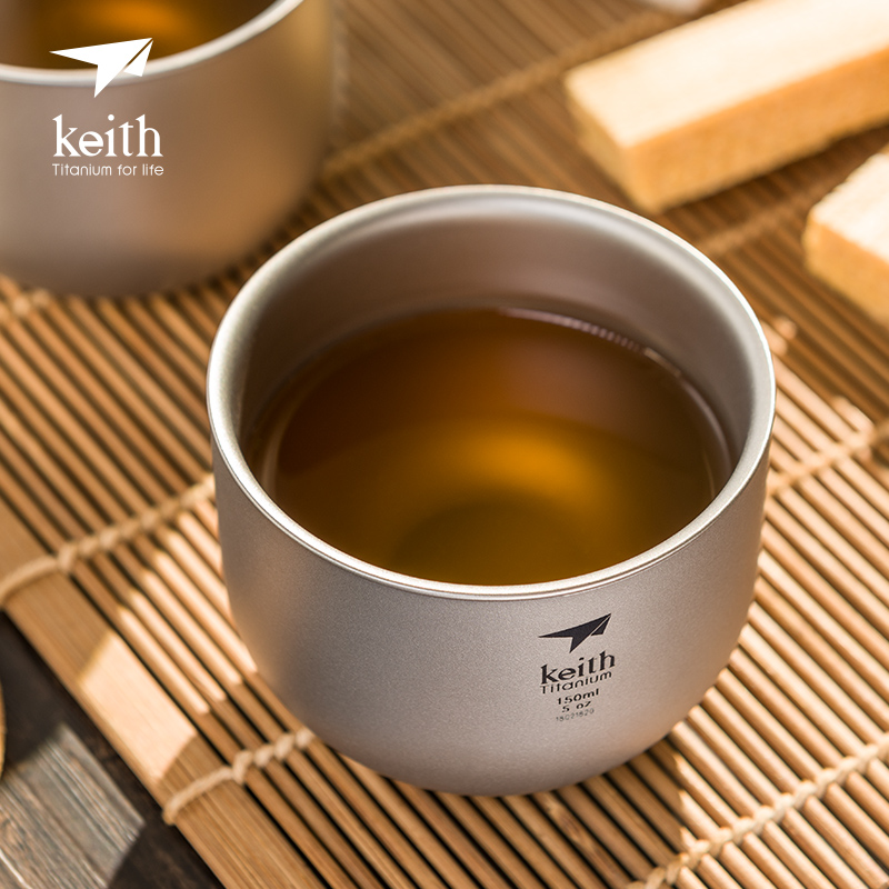 keith铠斯纯钛双层隔热防烫茶杯家用办公咖啡杯户外钛杯便携杯子