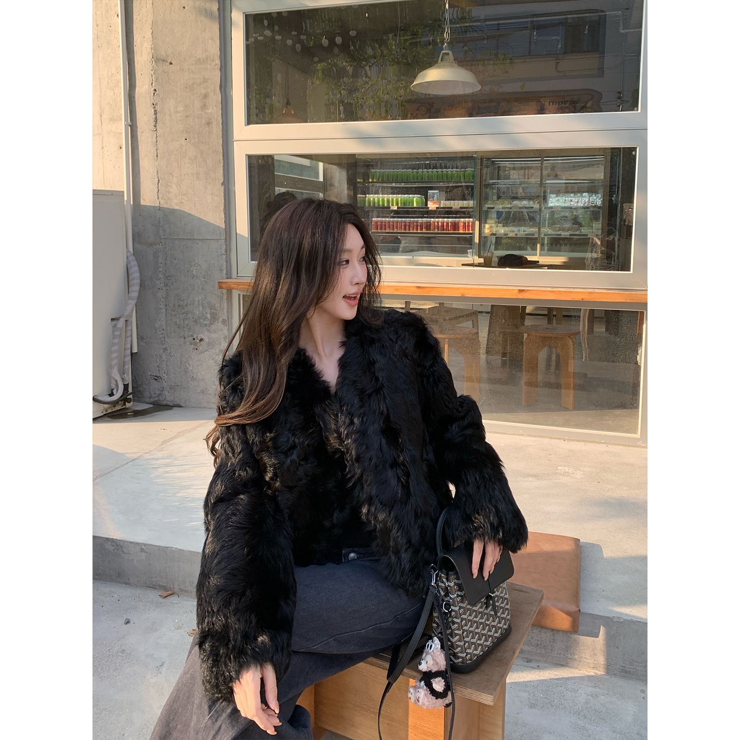 小湖羊皮毛一体外套女短款2025年冬季新款高级感气质卷毛皮草大衣