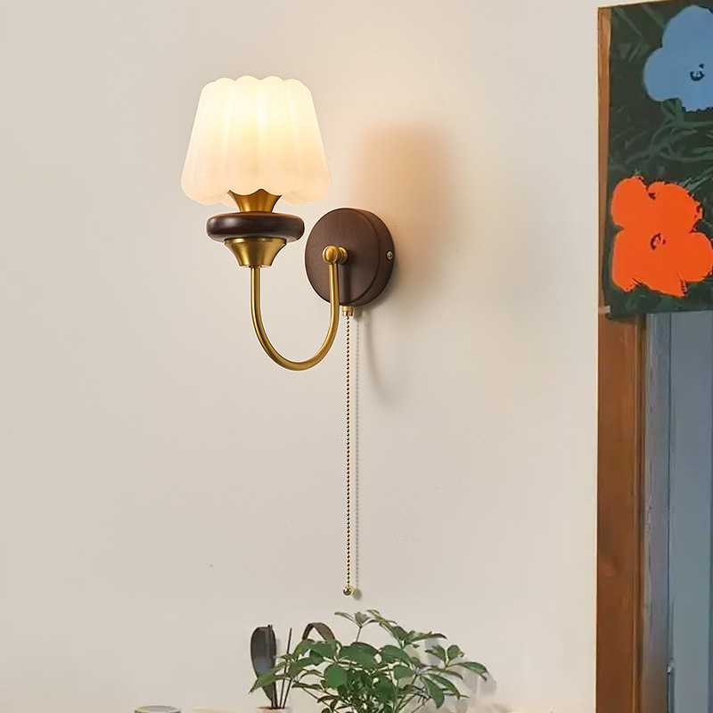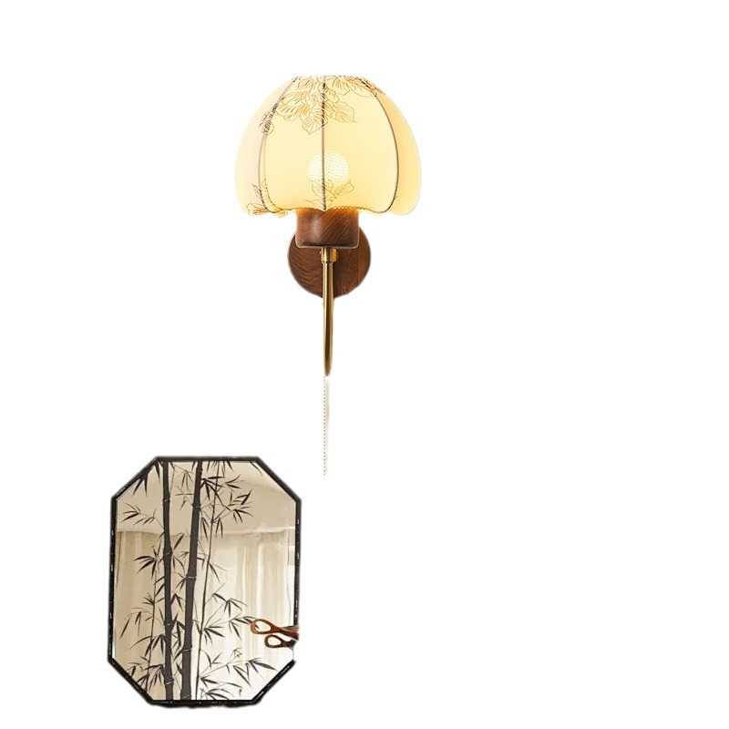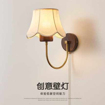 侘寂风壁灯美式复古布艺花纹壁灯新中式客厅卧室过道实木护眼灯具