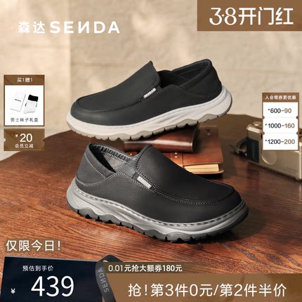 森达2026春新一脚蹬软底舒适皮鞋