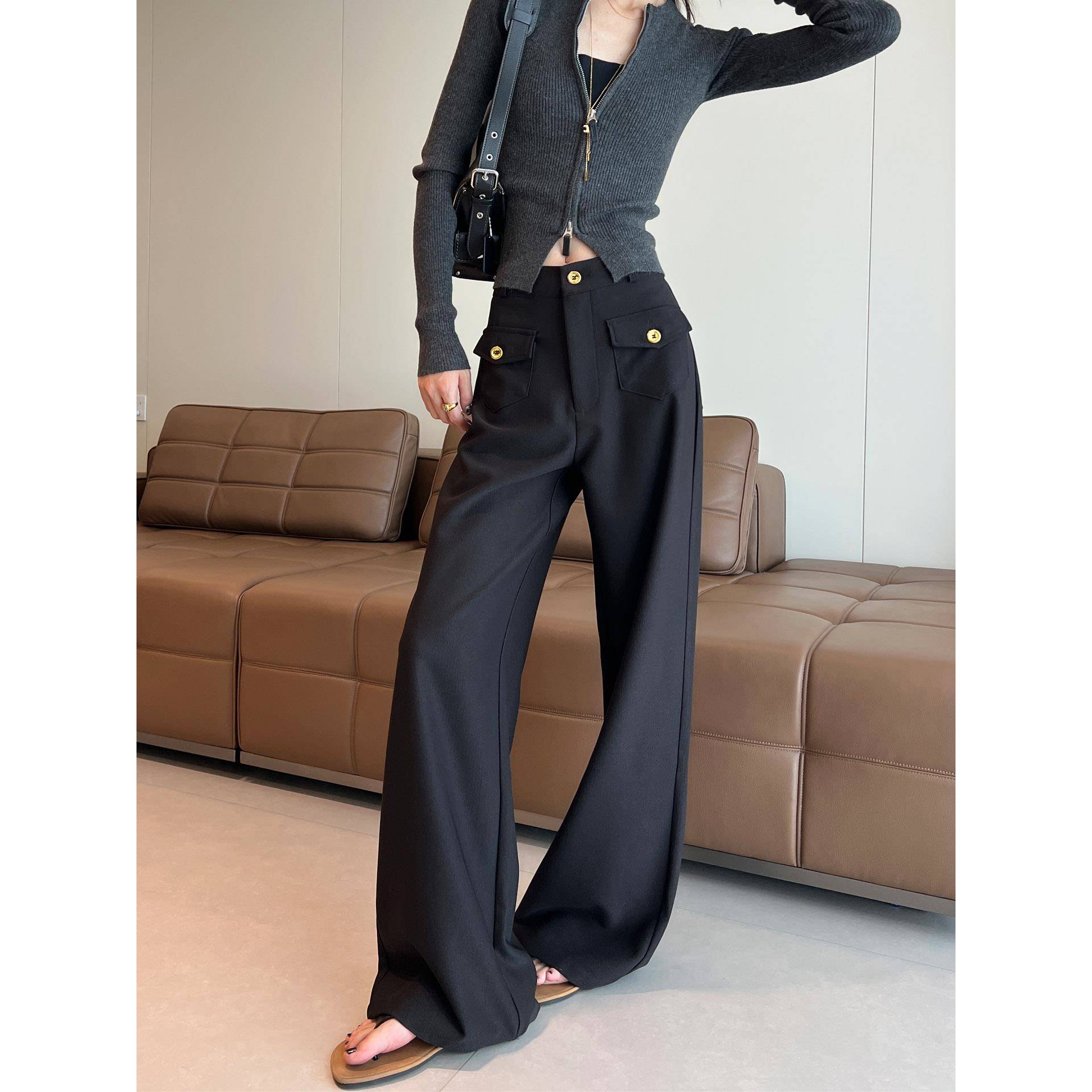 黑色阔腿裤女春秋新款高腰垂感窄版西装裤休闲直筒慵懒松弛感裤子