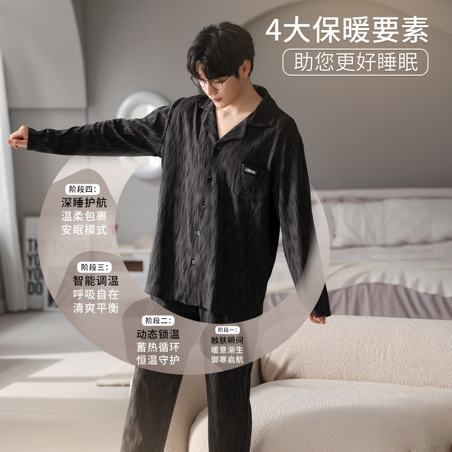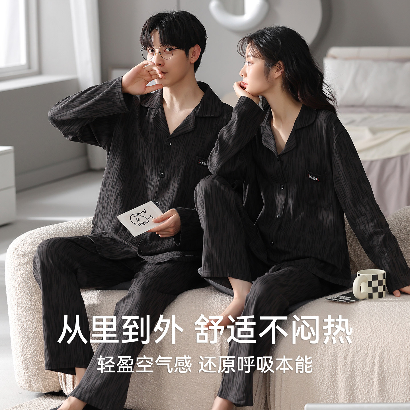 都市丽人情侣睡衣纯棉长袖套装