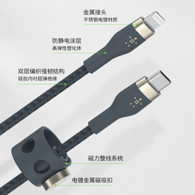 belkin贝尔金lightning数据线手机充电线转C转lightning快充适用苹果iphone14promax/13/12手机PD数据线