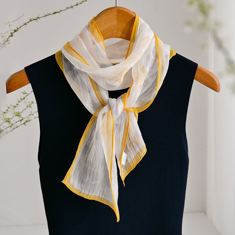 小丝巾长条系脖高级感围巾薄款纱巾春夏季丝带脖饰妈妈款飘带护颈