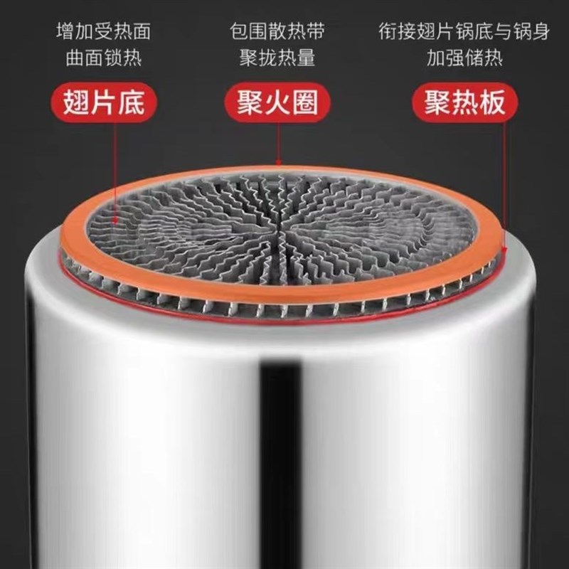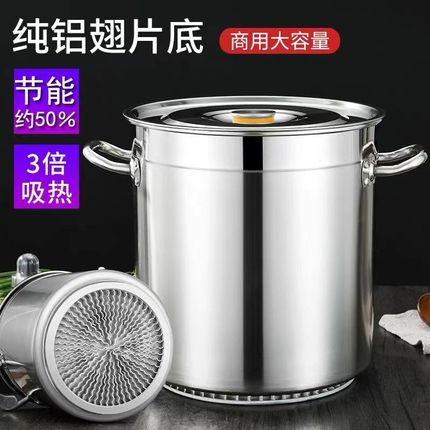 燃气节能汤桶带盖加厚304大容量不锈钢卤桶汤锅T翅片覆底圆桶商用