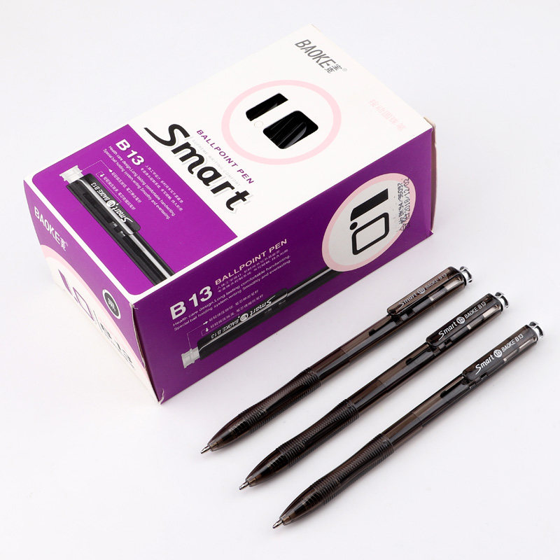 48支 宝克1.0MM圆珠笔B13加粗按压原子笔黑色蓝色学生办公油笔学生专用办公商务48支盒装子弹头教师用